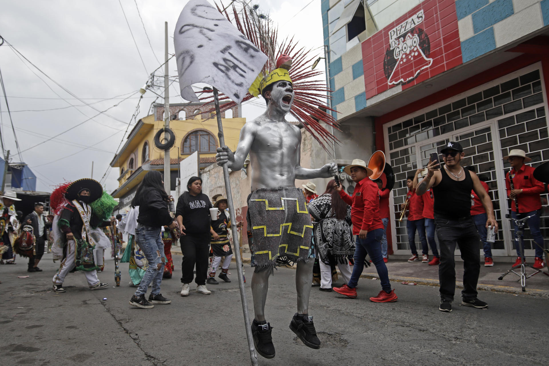 Bailando a ritmo de banda, los Xinacates o Judíos, que son representados por hombres, salieron pintados con aceite quemado de vehículos o pintura en polvo con aceite.