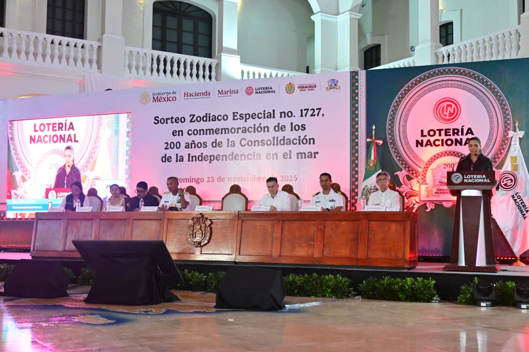 En el Museo Naval México, la directora general de Lotería Nacional, Olivia Salomón, mencionó que desde Veracruz, tierra decisiva para la historia de México y cercana tanto al corazón de la institución como del pueblo mexicano, se celebra el Sorteo Zodiaco Especial No. 1727 para recordar que hace 200 años el país vivía su etapa final de independencia, “el puerto de Veracruz fue testigo del cierre definitivo del dominio extranjero, fue en estas aguas donde México aseguró su futuro, donde la resistencia se transformó en victoria y donde la libertad dejó de ser un ideal para convertirse en realidad”.
