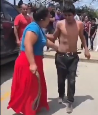 Armada con un cinturón y el coraje de una madre decepcionada, la mujer lo azotó en reiteradas ocasiones mientras lo regañaba a gritos: “¿Yo te he enseñado a robar?, ¿quién te mandó a hacer eso?”.
