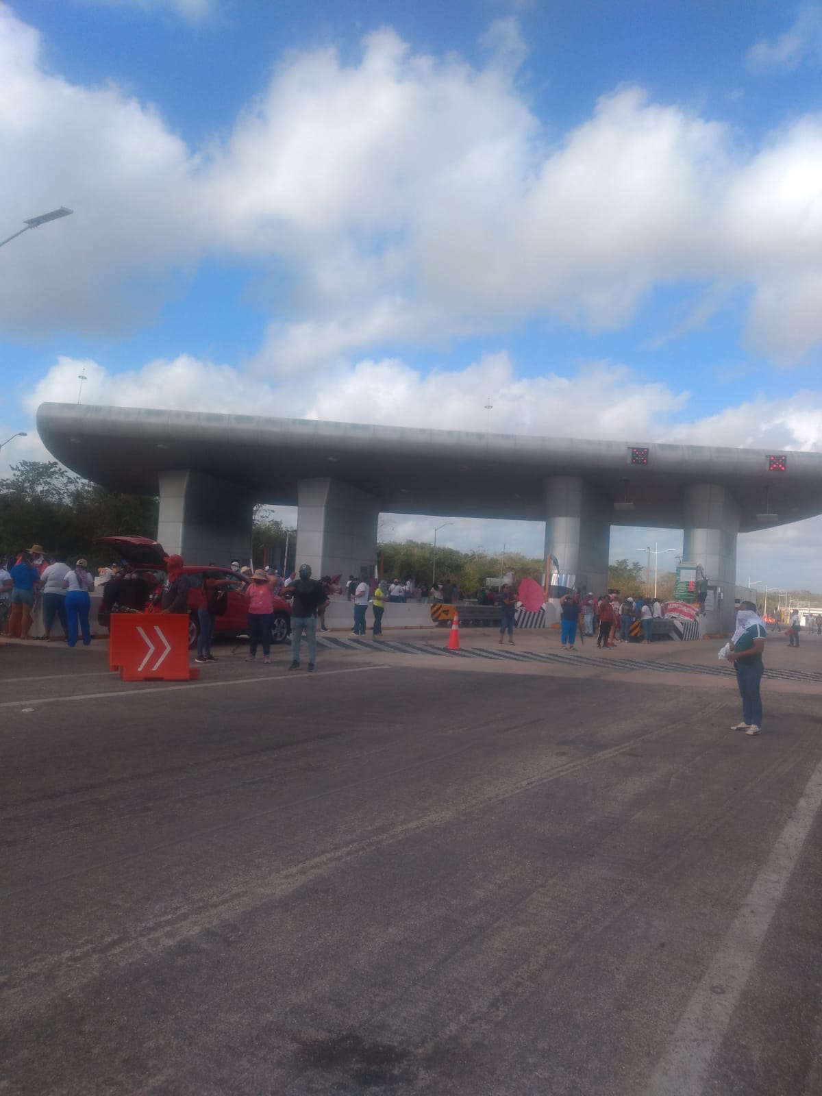 Cancún, Quintana Roo, 03 de Abril del 2025.- Docentes de diversas regiones extendieron sus movilizaciones este miércoles a las casetas de peaje de la autopista Cancún-Mérida, operada por el Grupo ICA, como parte de su rechazo a la reforma propuesta a la Ley del ISSSTE.