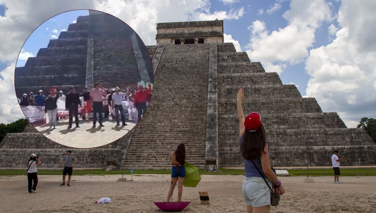 Alrededor de 40 integrantes de la CNTE entraron este 20 de marzo de 2026 en Chichén Itzá, ocupando el área frente a El Castillo para exigir jubilaciones dignas. La protesta de los coincidió con la realización de un evento privado que exhibió el trofeo original de la Copa del Mundo de Fútbol, instantes antes en el mismo recinto.