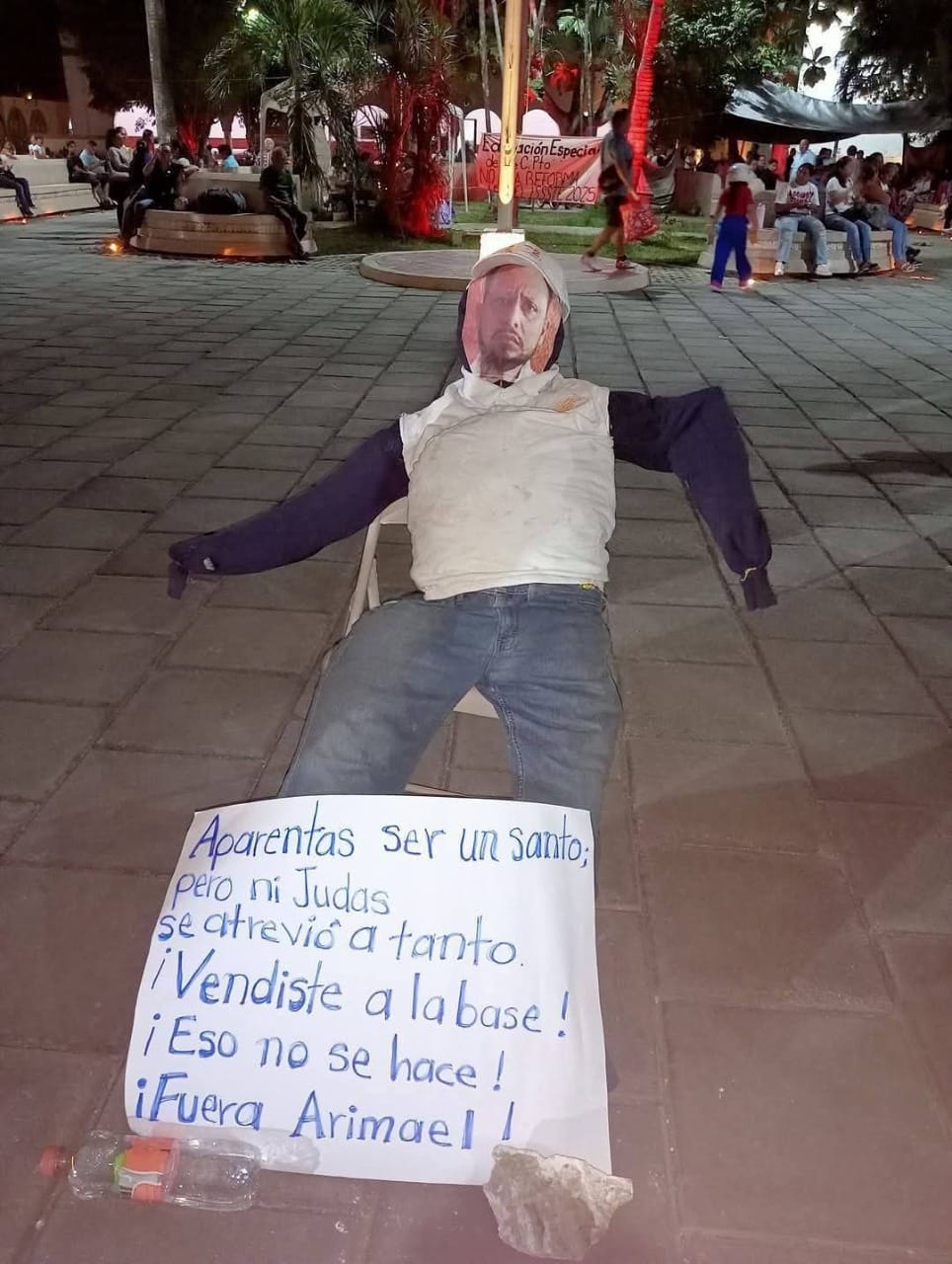 El mensaje que acompañaba al muñeco fue contundente, una muestra inequívoca de la decepción del gremio. Para los maestros, Arimael Salas dejó de ser un aliado y se convirtió en lo que juró combatir.