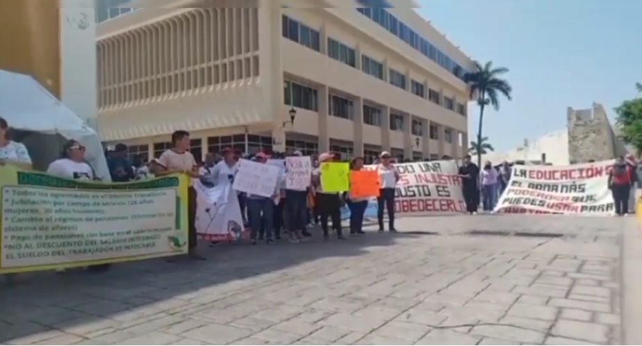 En Campeche, un grupo de alrededor de 150 maestros pertenecientes a la CNTE marcharon por el Centro de Campeche y protestaron frente a las sedes de los poderes Legislativo y Ejecutivo para manifestar su rechazo a la Reforma de la Ley del Instituto de Seguridad y Servicios Sociales para los Trabajadores del Estado (ISSSTE).