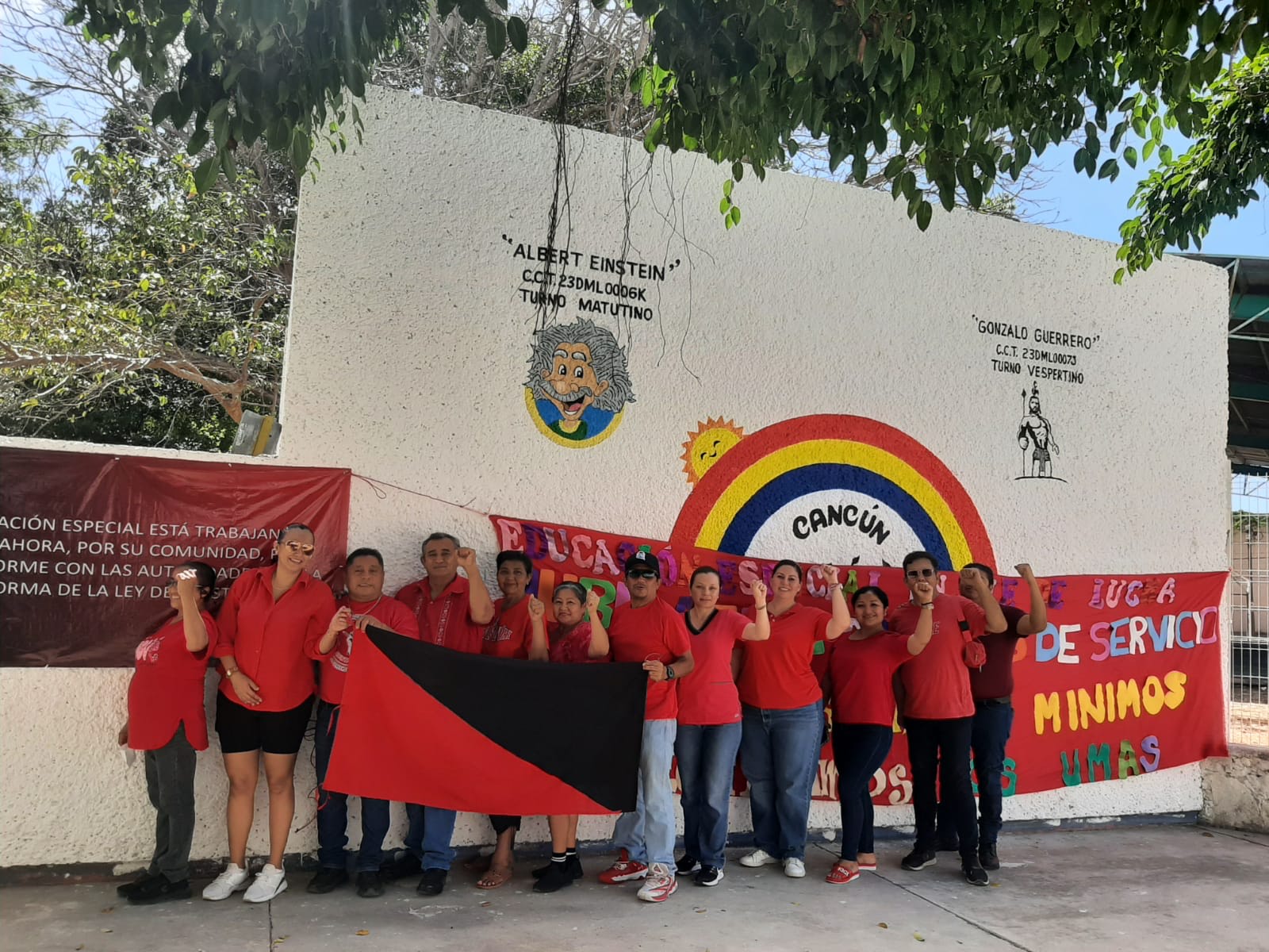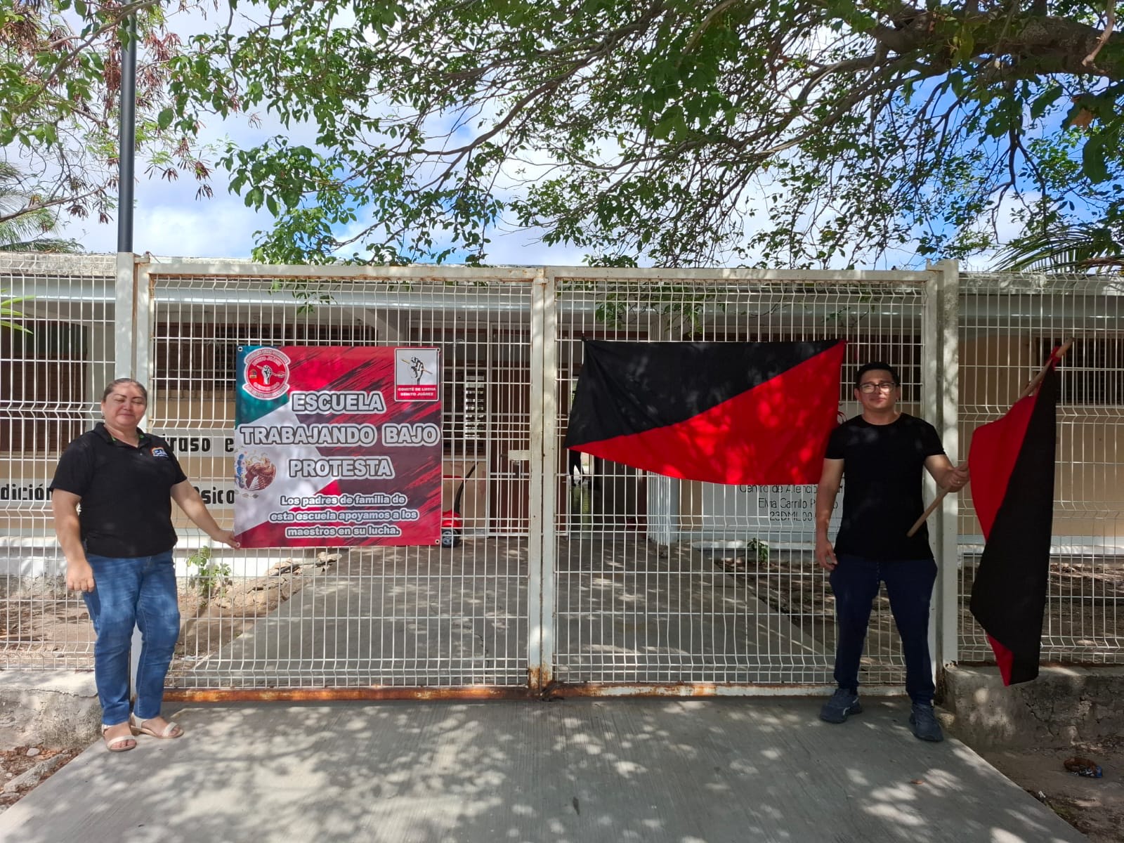 Alrededor de dos mil maestros del comité de lucha de Benito Juárez se levantaron en huelga este miércoles y para ello colocaron banderas rojas y negras en diversas escuelas de Cancún.