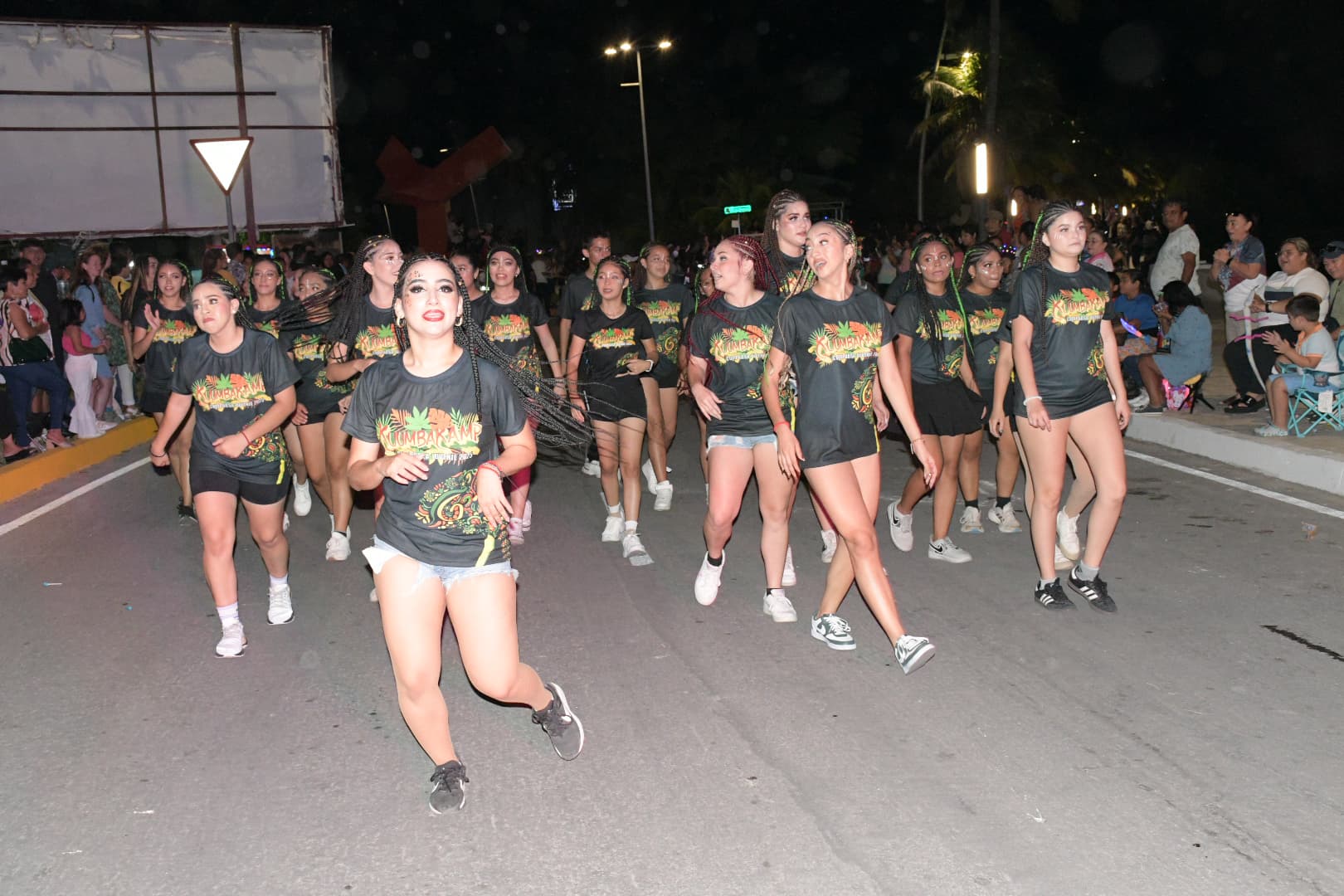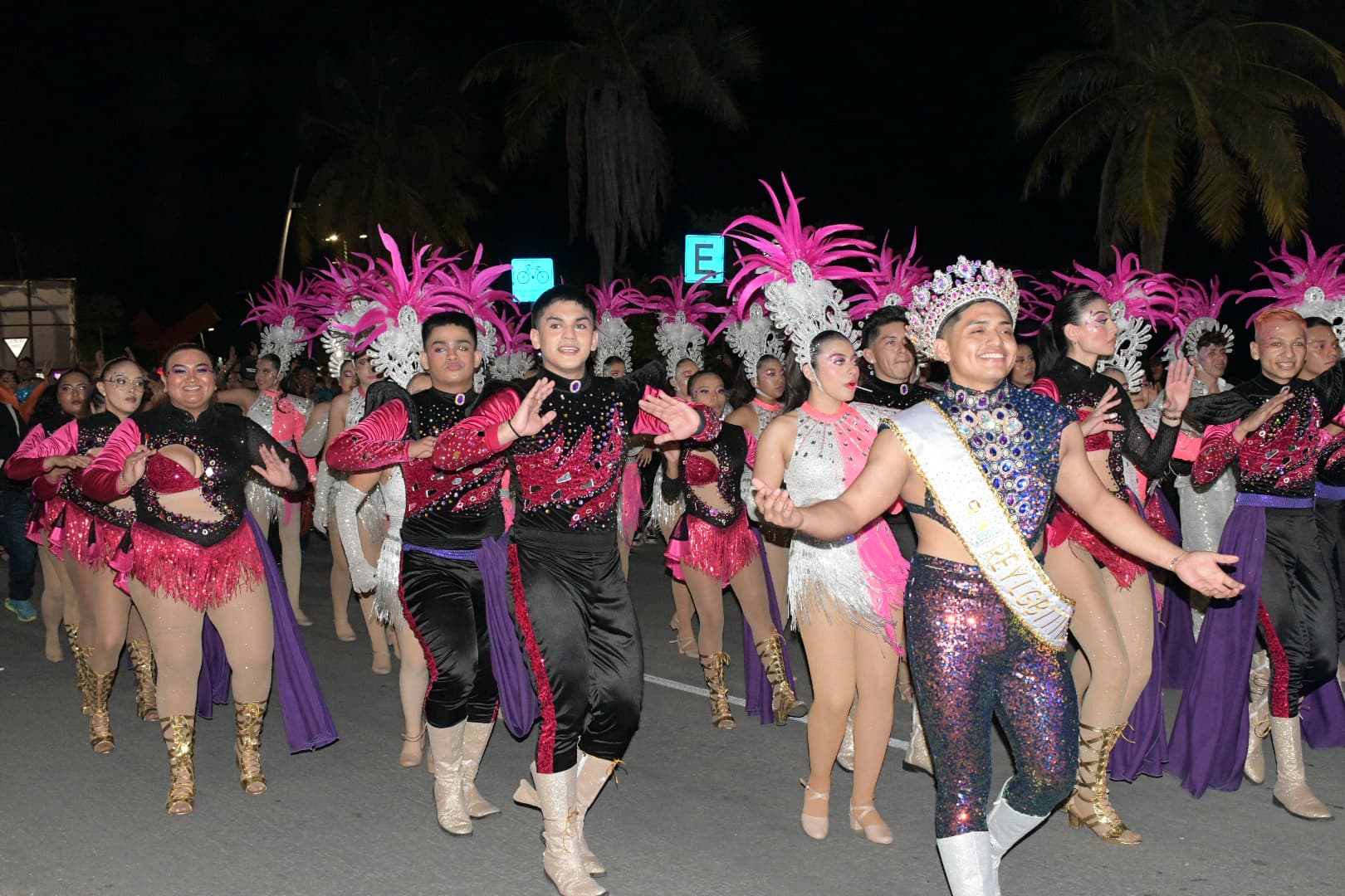 Más de 80 comparsas con coloridos trajes desfilaron la noche del jueves con enérgicos bailables, carros alegóricos que maravillaron al público asistente y mascotas disfrazadas que enamoraron a más de uno, en este espectacular recorrido que inició en la calle Guadalupe Victoria y siguió por la avenida panorámica aledaña al malecón de la ciudad hasta llegar a la Explanada de la Bandera.