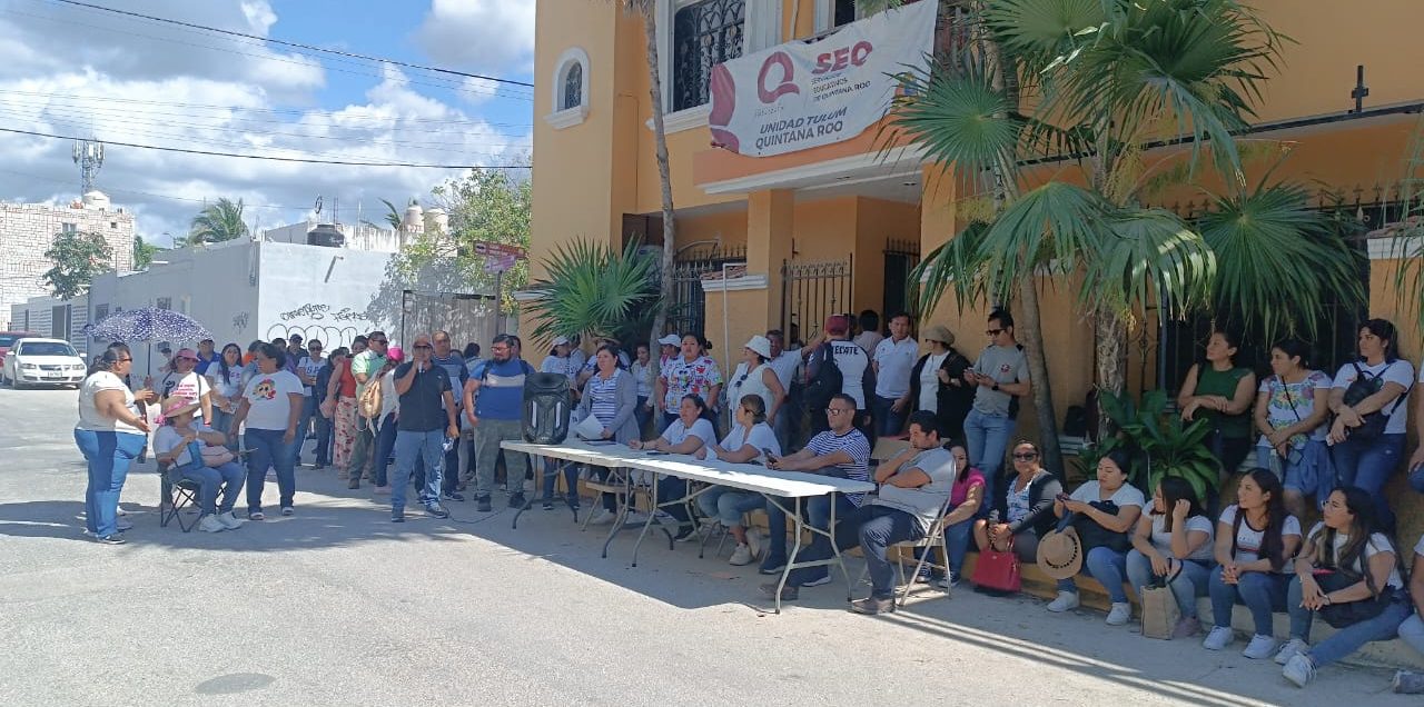 Magisterio de Tulum Mantiene Protesta en la Oficina de la SEQ