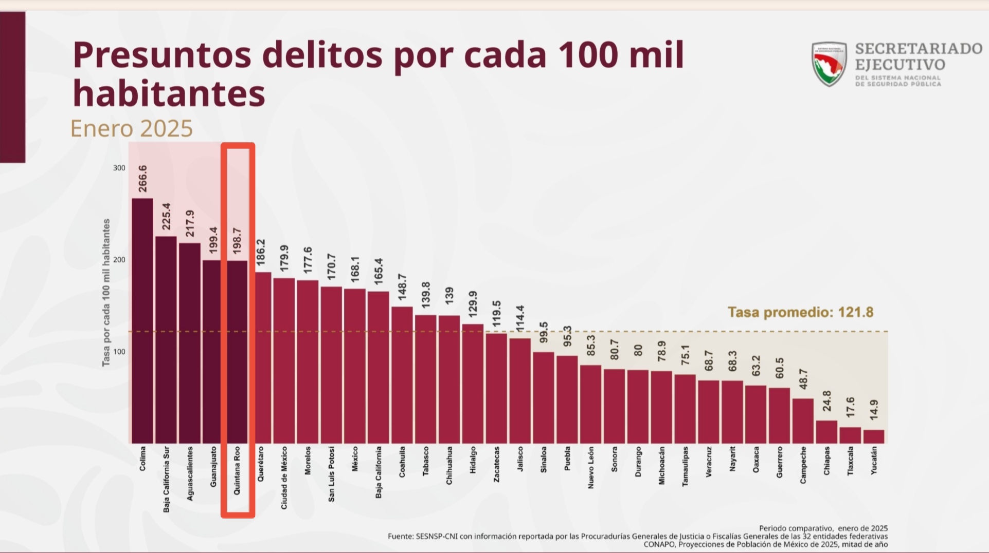 A nivel nacional, Quintana Roo se encuentra en el quinto lugar en delitos por cada 100 mil habitantes, una posición que contradice las constantes declaraciones gubernamentales de que la seguridad está mejorando.