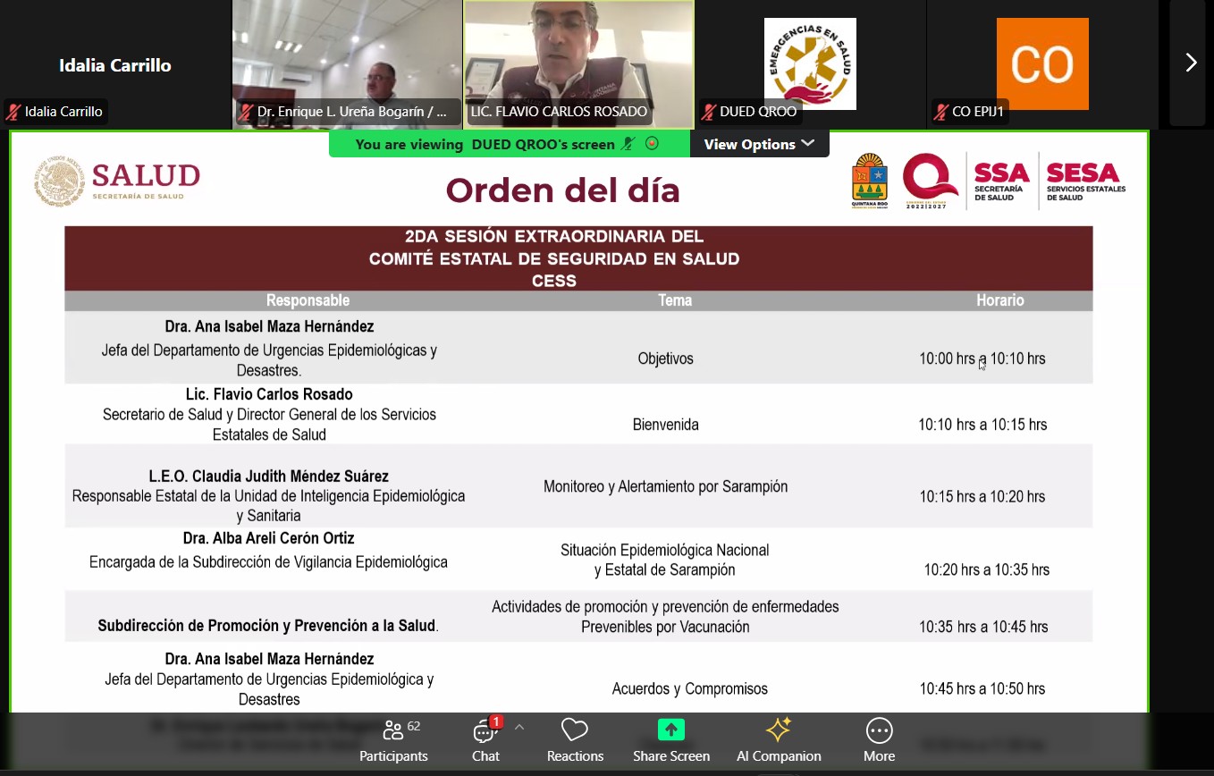 Durante la sesión, se reiteró que en Quintana Roo se mantiene una vigilancia epidemiológica permanente como medida preventiva para actuar de manera oportuna ante cualquier riesgo a la salud pública.