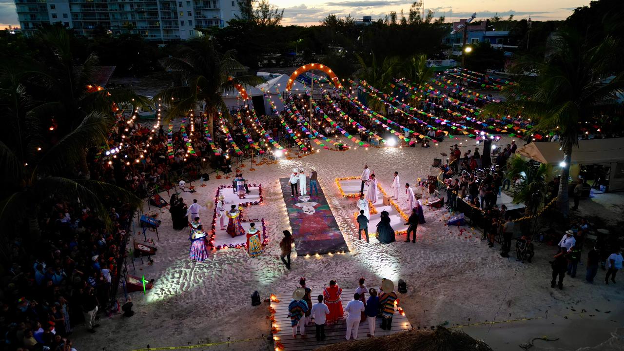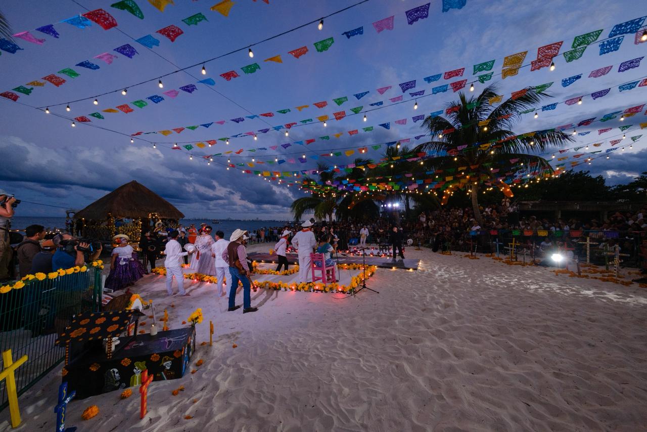 El andador principal de Puerto Juárez se transformó en un escenario de color y misticismo con 51 altares elaborados con esmero, 50 stands gastronómicos repletos de sabores tradicionales, 120 módulos de artesanos y emprendedores que mostraron el talento local, y un vibrante programa cultural y artístico que llenó de vida las calles y los corazones.
