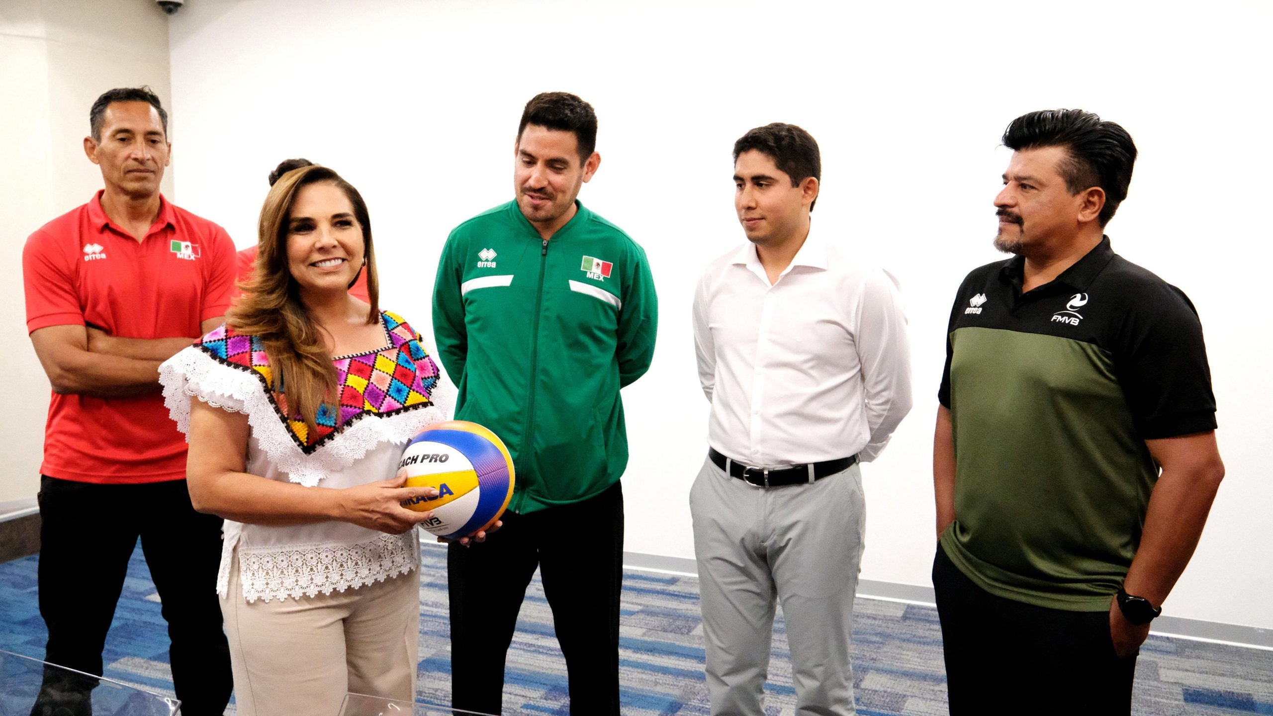 Acompañada de Inés, Susana, Atenas, María, Yeray, Jorman. Miguel y Carlos, así como de los entrenadores Francisco, Rubén, Juan, Ramón, Juan Alberto, Eduaro, Miguel Ángel y Guillermo, la gobernadora de Quintana Roo destacó que se trata del evento de más alto nivel de la Federación Internacional de Voleibol y del Volleyball World.