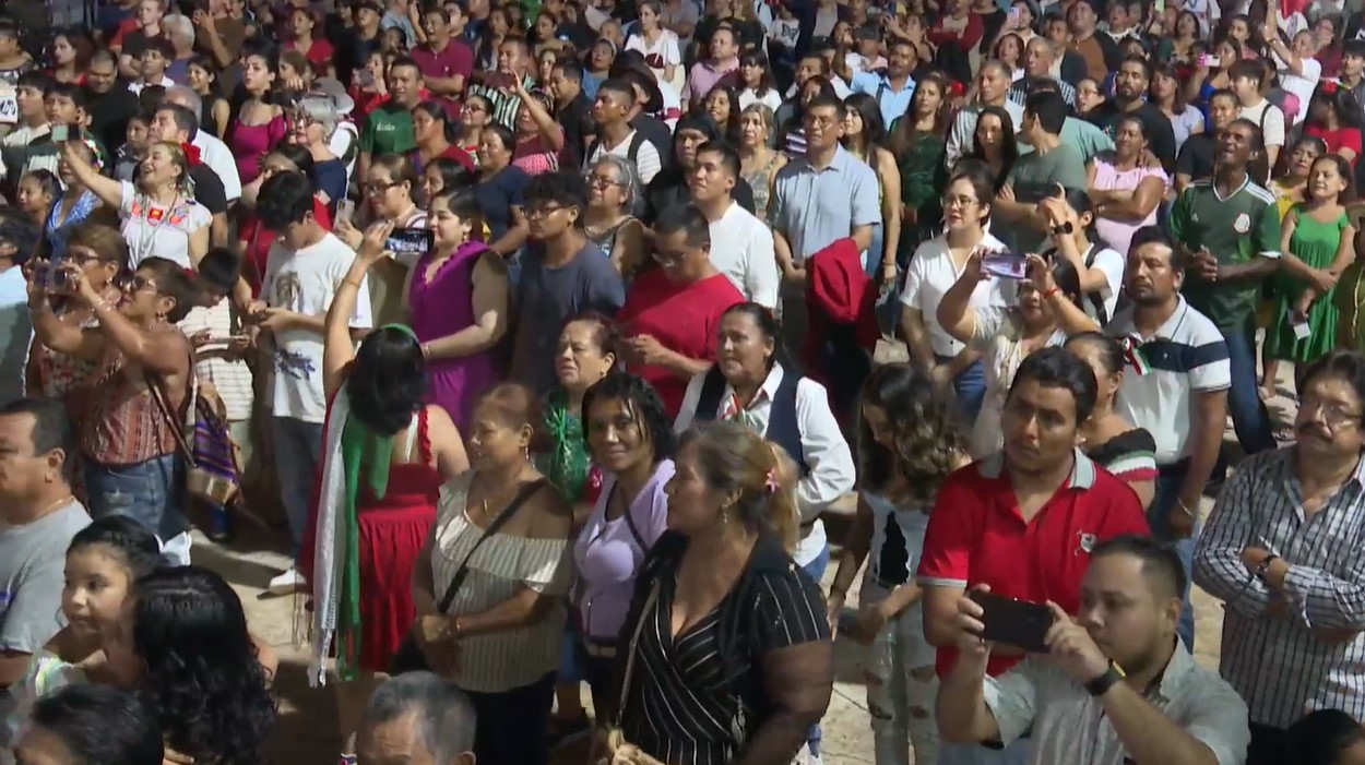 “Mexicanas y mexicanos, quintanarroenses, viva la Independencia Nacional. Vivan las heroínas y los héroes que nos dieron patria y libertad. Viva Miguel Hidalgo. Viva José María Morelos. Viva Vicente Guerrero. Viva Nicolás Bravo. Viva Juan Aldama. Viva Ignacio Allende. Viva Mariano Matamoros. Viva Josefa Ortiz. Viva Leona Vicario. Viva Andrés Quintana Roo. Vivan las Fuerzas Armadas de México. Que vivan las mujeres. Que vivan las mujeres indígenas. Que viva el humanismo con corazón feminista. Viva Quintana Roo. Viva Quintana Roo. Viva México. Viva México, Viva México.