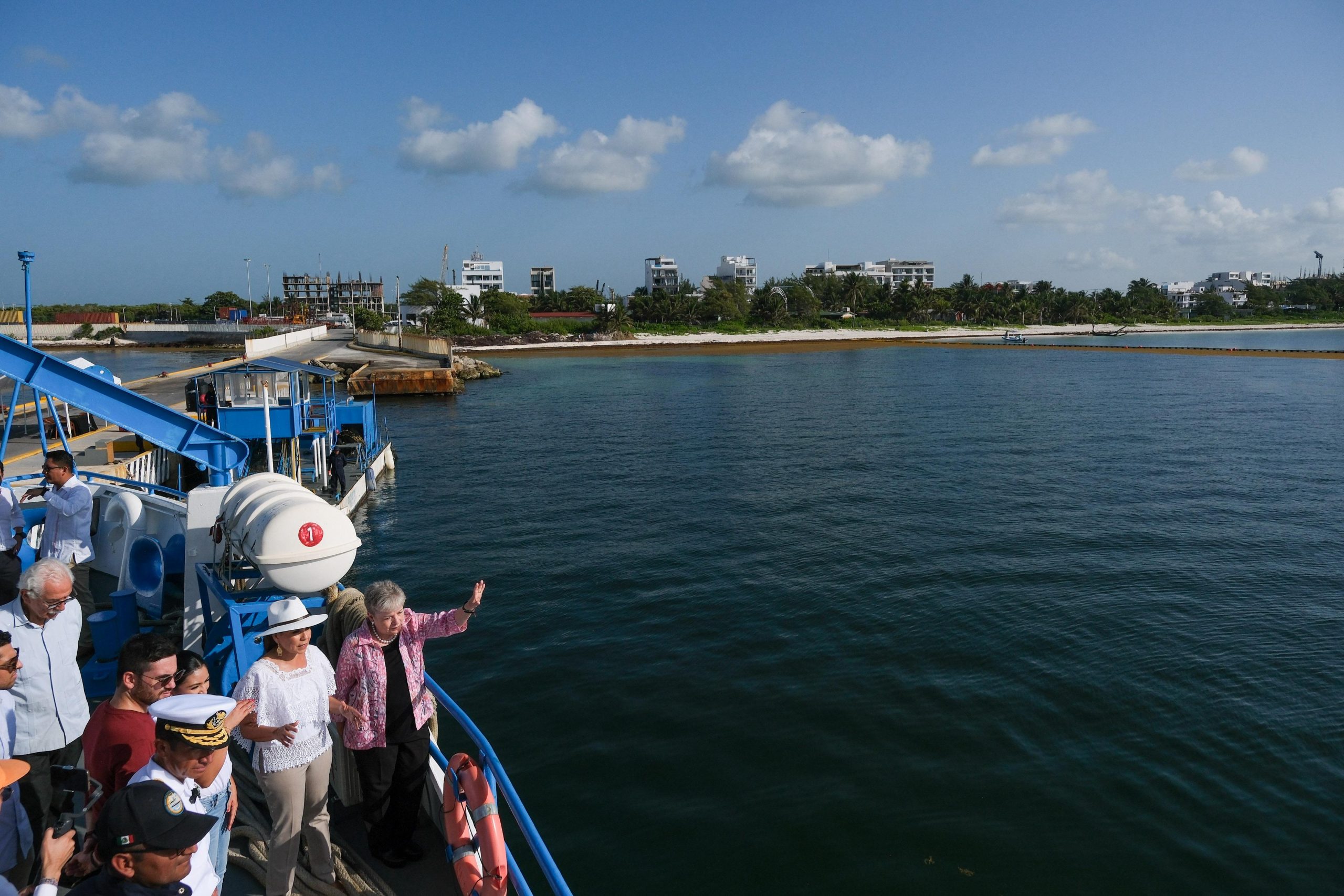 A bordo del buque Natans, la secretaria Alicia Bárcena destacó que este trabajo extraordinario hecho en Quintana Roo tiene un ciclo completo, desde el centro de monitoreo, las acciones de recolección y contención en el mar por la MARINA, la recolección en las playas, y pronto el Parque de Economía Circular del Sargazo.