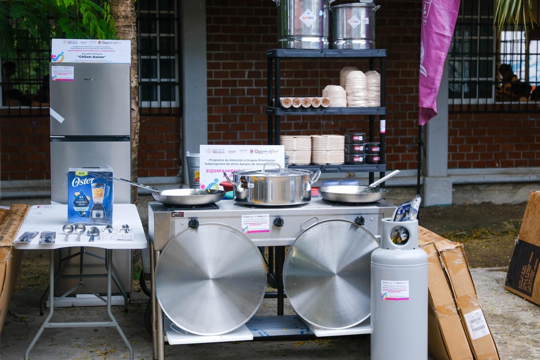 Los desayunadores se encuentran en las escuelas secundaria Carlos Fuentes, las primarias Chilam Balam, Benito Juárez, Laguna de Bacalar, Rafael Ramírez Castañeda, y los jardines de niños Rosario Mendoza y Myriam Nemirovsky. Recibieron utilensilios de comedor, equipo de cocina que incluyó refrigeradores, parrillas industriales y cilindros de gas; mobiliario y otros insumos.