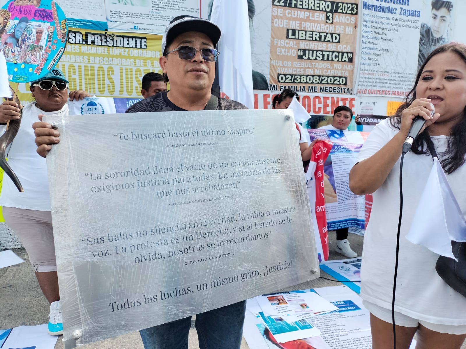 “Tenemos un estado declarado como paraíso, paraíso donde las personas se desaparecen tan fácilmente como si la tierra y el mar se los comiera vivos, pasan los días y todo queda en el olvido. Se ha vuelto común que las personas desaparezcan, este paraíso huele a llanto de madres y familias buscadoras”, refirió Romana Rivera.