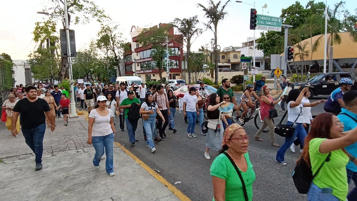 Con la consigna “La Venta no se toca”, cientos de habitantes de Villahermosa marcharon esta tarde para protestar por el proyecto del Museo Nacional Olmeca que se pretende construir en el Parque Museo La Venta.