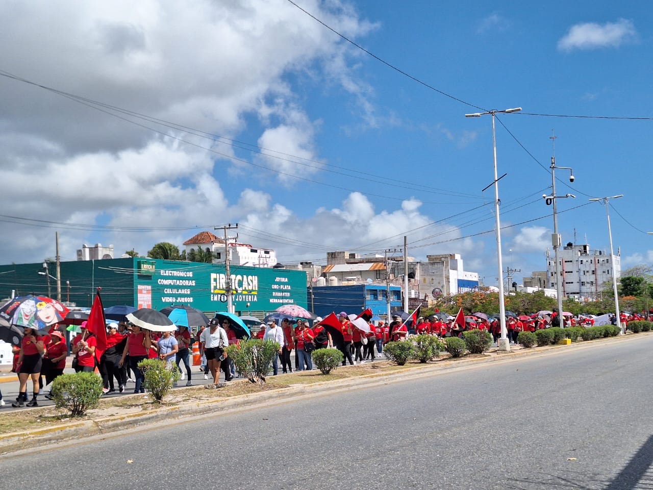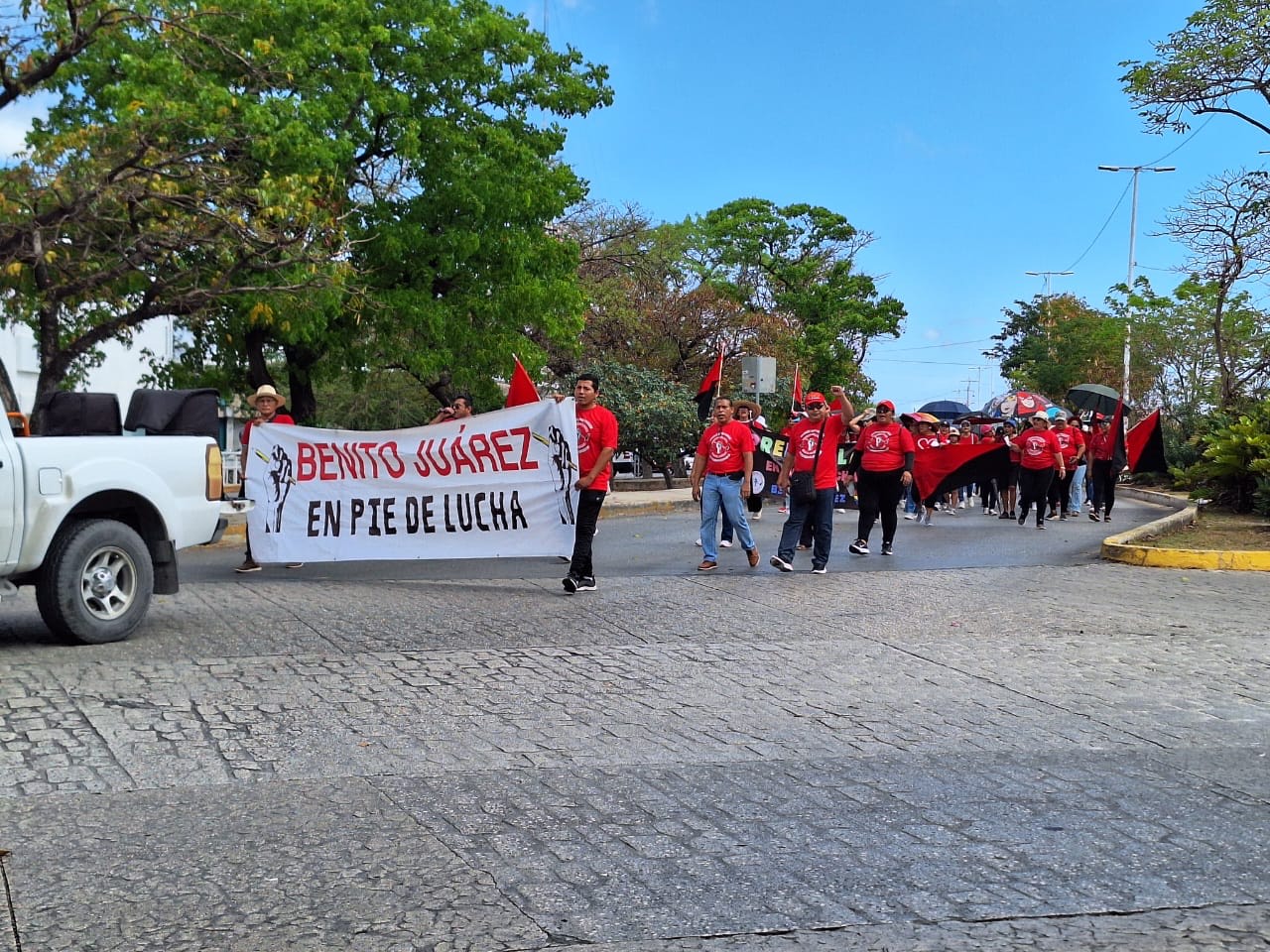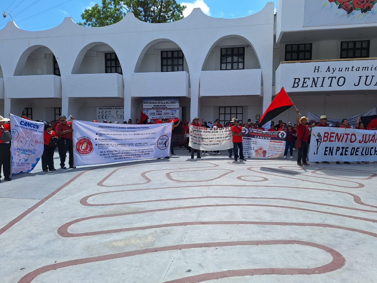 El contingente avanzó hacia la avenida Tulum hasta llegar al palacio municipal donde los integrantes del Comité de lucha de Benito Juárez lanzaron consignas A través de pancartas y lonas exigiendo la abrogación de ley del ISSSTE 2027 así como la reforma educativa 2013, los cuales consideran que afectan seriamente sus derechos laborales como maestros.
