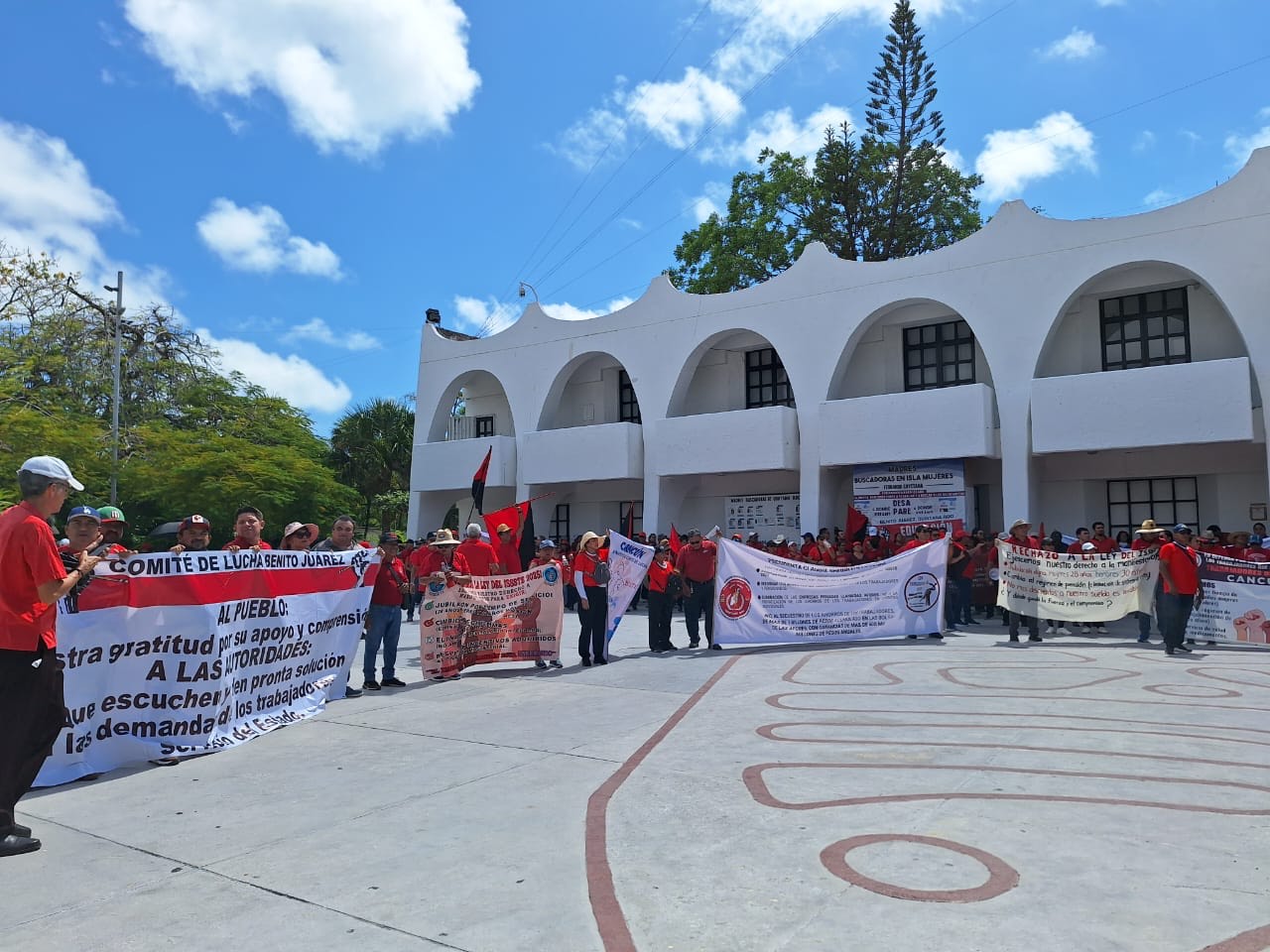 El contingente avanzó hacia la avenida Tulum hasta llegar al palacio municipal donde los integrantes del Comité de lucha de Benito Juárez lanzaron consignas A través de pancartas y lonas exigiendo la abrogación de ley del ISSSTE 2027 así como la reforma educativa 2013, los cuales consideran que afectan seriamente sus derechos laborales como maestros.