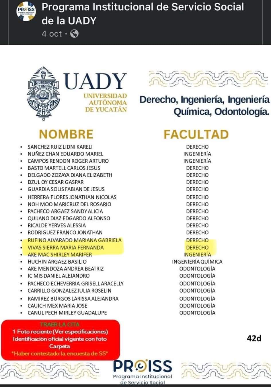 MÉRIDA, YUC.- 06 de noviembre.- Se ha revelado que María Fernanda Vivas Sierra, directora del Centro de Conciliación Laboral del Estado de Yucatán (Cecoley), aparentemente falseó información en su currículum vitae, puesto que indica tener el título de licenciada en derecho cuando no es así. De acuerdo con informes filtrados, Vivas Sierra se presenta como licenciada en derecho por la Universidad Autónoma de Yucatán, aunque no ha cumplido con su servicio social ni posee cédula profesional.