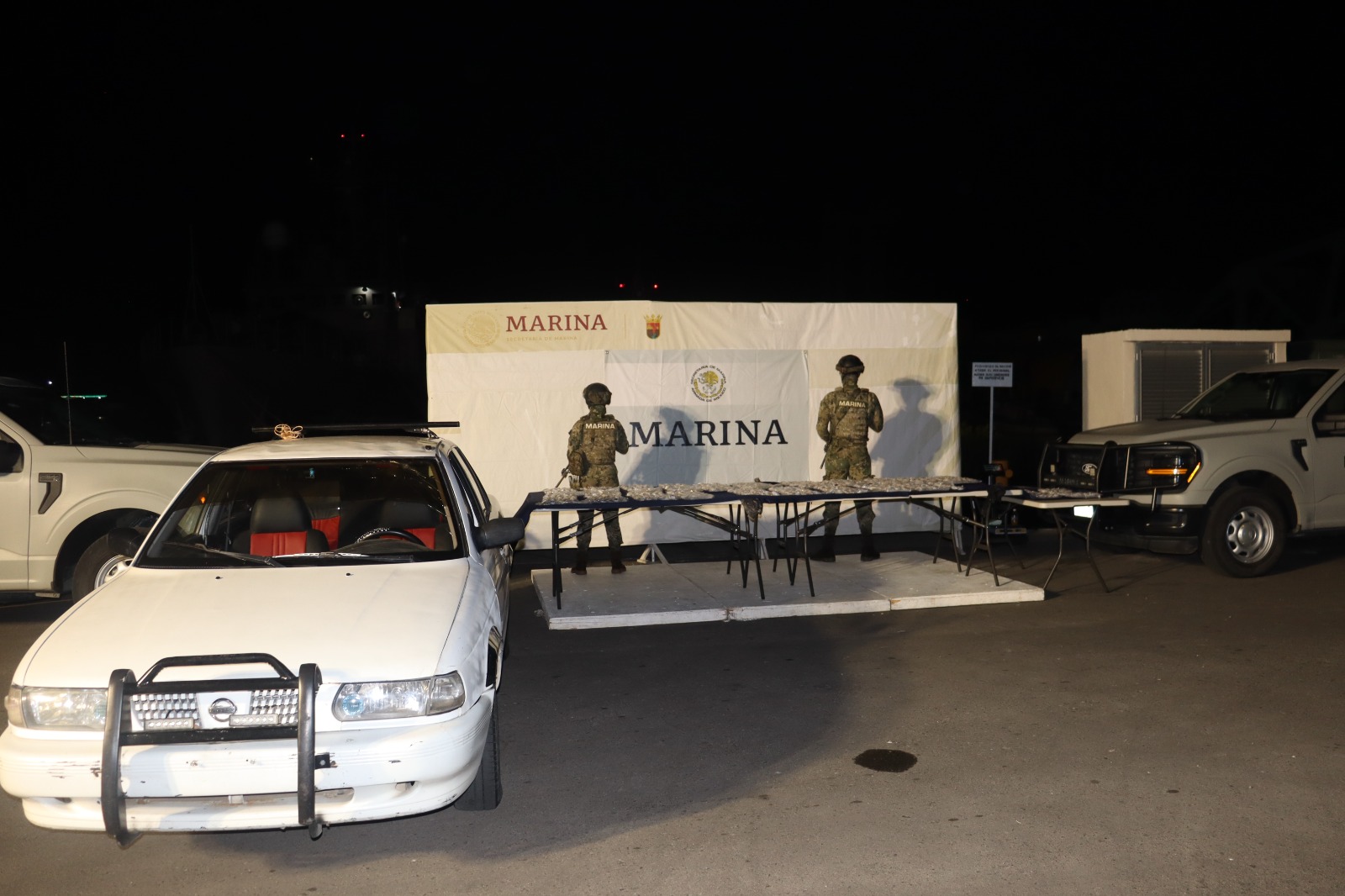Las acciones se llevaron a cabo durante operativos de patrullajes de vigilancia terrestre por parte del personal de Infantería de Marina, quienes durante su recorrido observaron un vehículo, cuyo conductor al percatarse de la presencia del personal naval emprendió la huida.