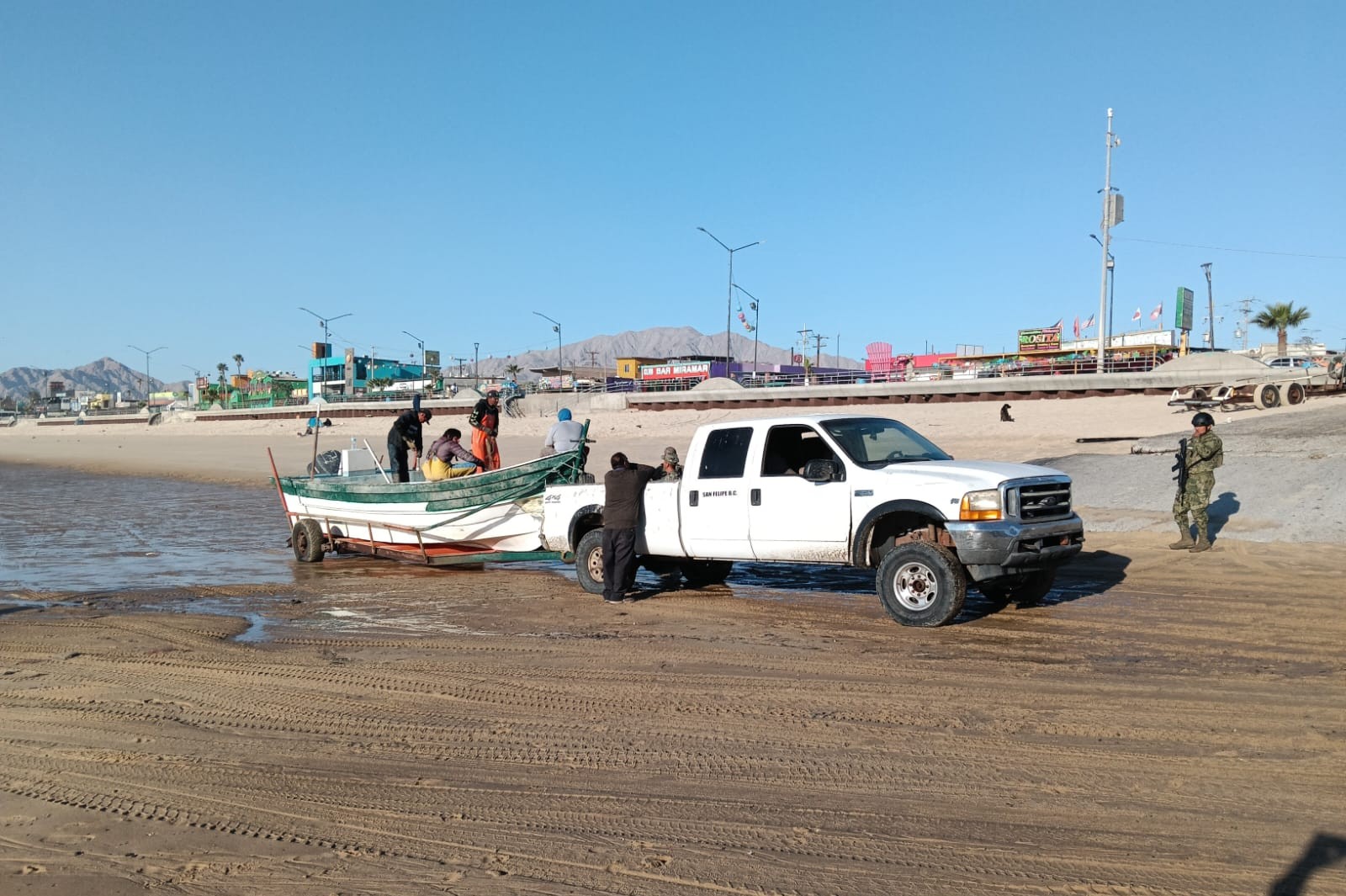 Posteriormente, la embarcación infractora dio el playazo en las proximidades del Malecón de San Felipe, Baja California, donde los presuntos infractores de la ley subieron ésta rápidamente a un remolque que los esperaba.