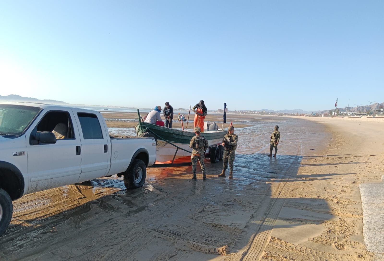 Posteriormente, la embarcación infractora dio el playazo en las proximidades del Malecón de San Felipe, Baja California, donde los presuntos infractores de la ley subieron ésta rápidamente a un remolque que los esperaba.