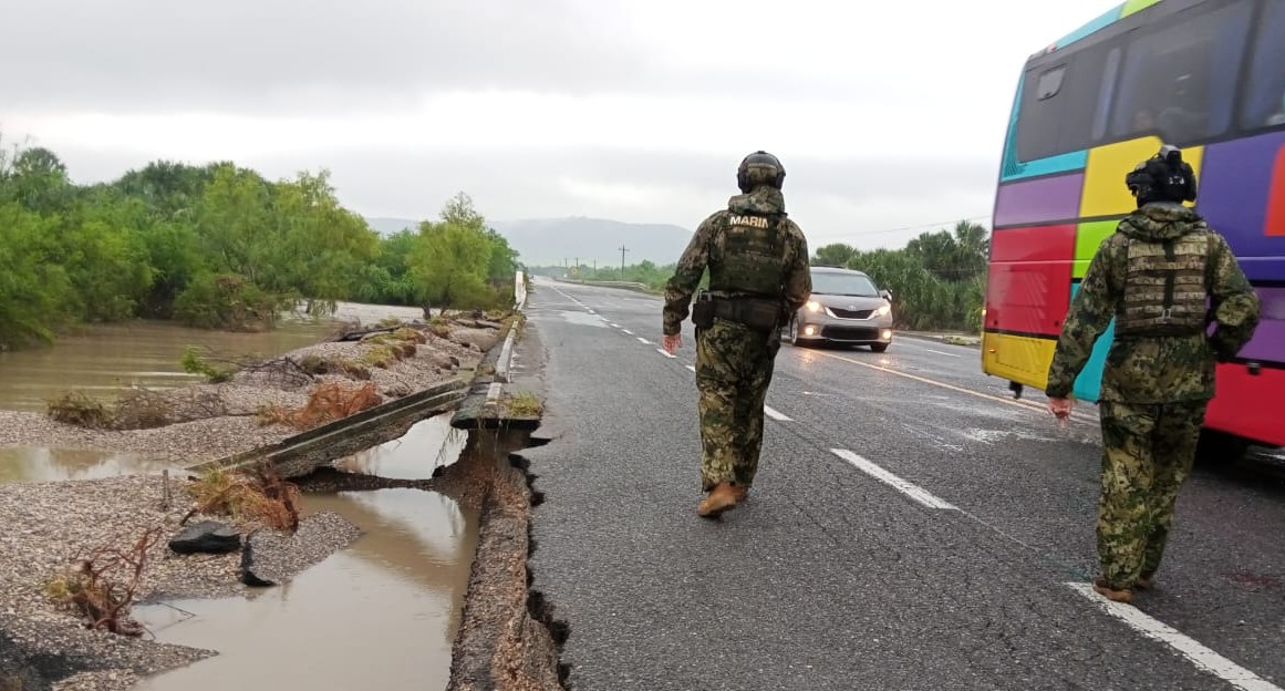Cabe destacar que, la Primera Zona Naval con sede en Cd. Madero y jurisdicción del Sector Naval de la Pesca y Matamoros, han desplegado en las localidades más vulnerables, personal de la Brigada de Respuesta a Emergencia (BRE) para auxiliar a la población, quienes proporcionaron apoyo con la remoción de lodo y basura liberando 32 vialidades, brindaron 46 atenciones médicas, auxiliaron a 117 personas, así como traslado y seguridad de personas a los albergues habilitados. De igual forma, desde el paso del huracán “Erick” a la fecha, se han entregado un aproximado de 535 despensas en dichas zonas.