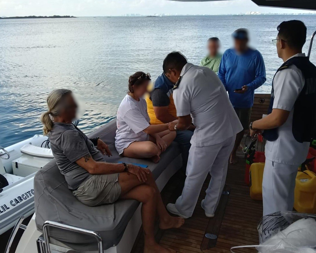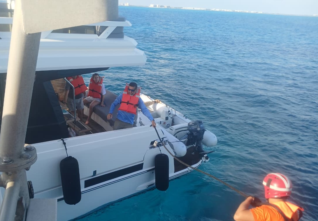 Derivado de lo anterior, la Quinta Región Naval, ordenó el zarpe inmediato de una embarcación tipo MLB Defender, perteneciente a la ENSAR Islas Mujeres, así como una patrulla interceptora con personal especializado a bordo, para realizar evacuación y remolque de citado yate. Una vez que las autoridades de Sanidad Internacional y migración llegaron a puerto, aplicaron el procedimiento establecido para embarcaciones extranjeras, en donde personal de sanidad perteneciente al Hospital Naval de Isla Mujeres, brindó atención médica de primer contacto a los tripulantes, tomando las medidas precautorias y registro por parte de la Capitanía del Puerto Isla Mujeres.