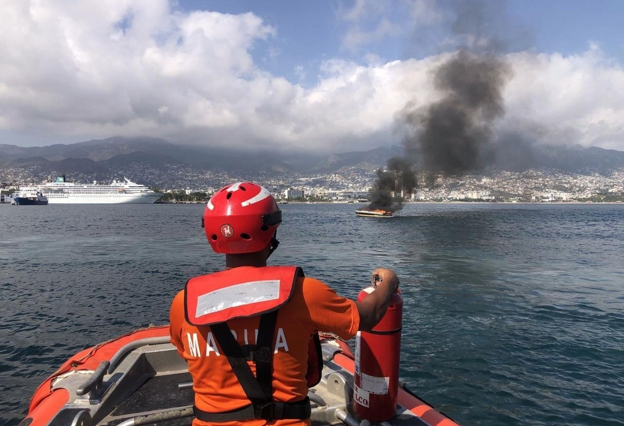Asimismo, personal de la Capitanía de Puerto, a bordo de una embarcación menor, logró la extinción total del incendio; finalmente, la embarcación siniestrada fue remolcada hasta inmediaciones de la playa Tlacopanocha, de este puerto.