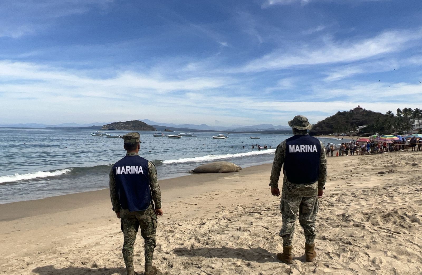 Compostela, Nayarit.- La Secretaría de Marina a través de la Armada de México, por conducto del Sector Naval de Boca de Chila, informa que ayer personal naval en coadyuvancia con otras dependencias, llevó a cabo el apoyo para el resguardo y protección de un ejemplar de Elefante marino adulto (Mirounga Angustirostris) de aproximadamente 700 a 900 kilogramos de peso y tres metros de largo, localizado en inmediaciones de la playa Los Ayala, Municipio de Compostela, Nayarit.
