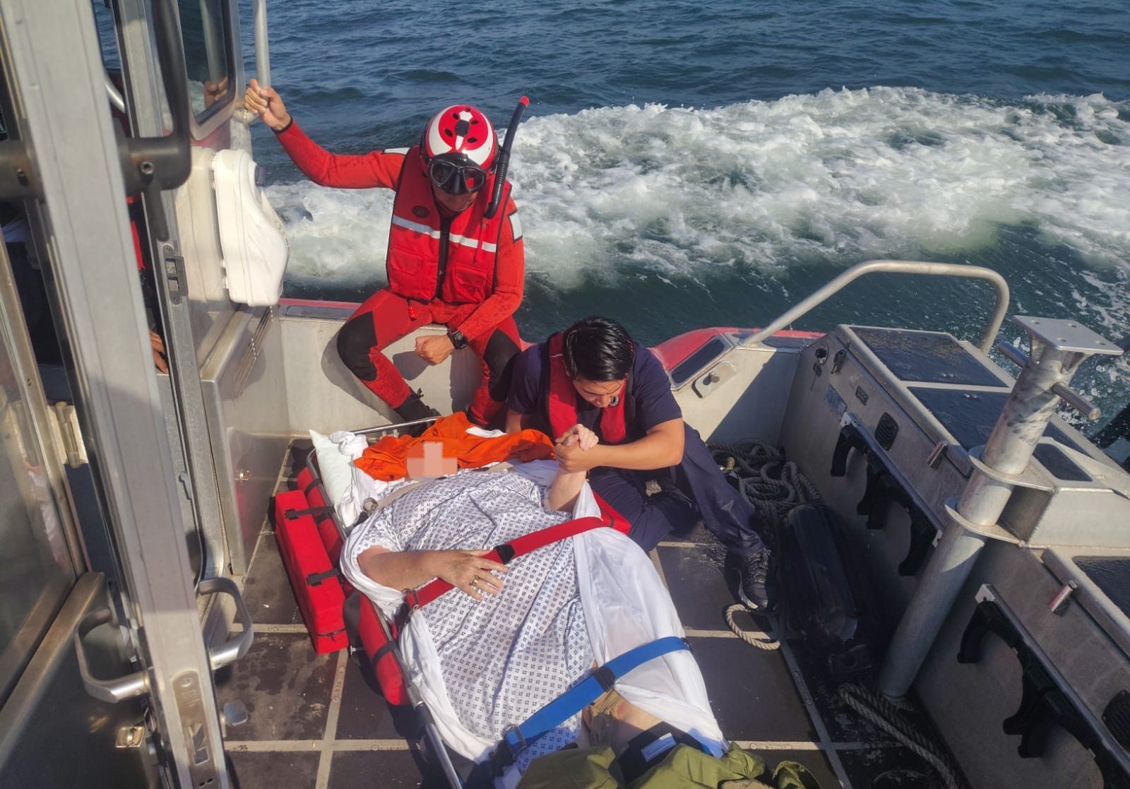 Una vez arribando al punto de encuentro con el Crucero Turístico, personal de Sanidad Naval procedió a la revisión y alistamiento en camilla de citada persona, procediendo a su evacuación, para ser trasladada en la embarcación tipo Defender a puerto seguro, donde fue entregada en situación médica estable a una ambulancia de Protección Civil para ser trasladada a un hospital de la localidad, con el fin de recibir atención médica especializada.
