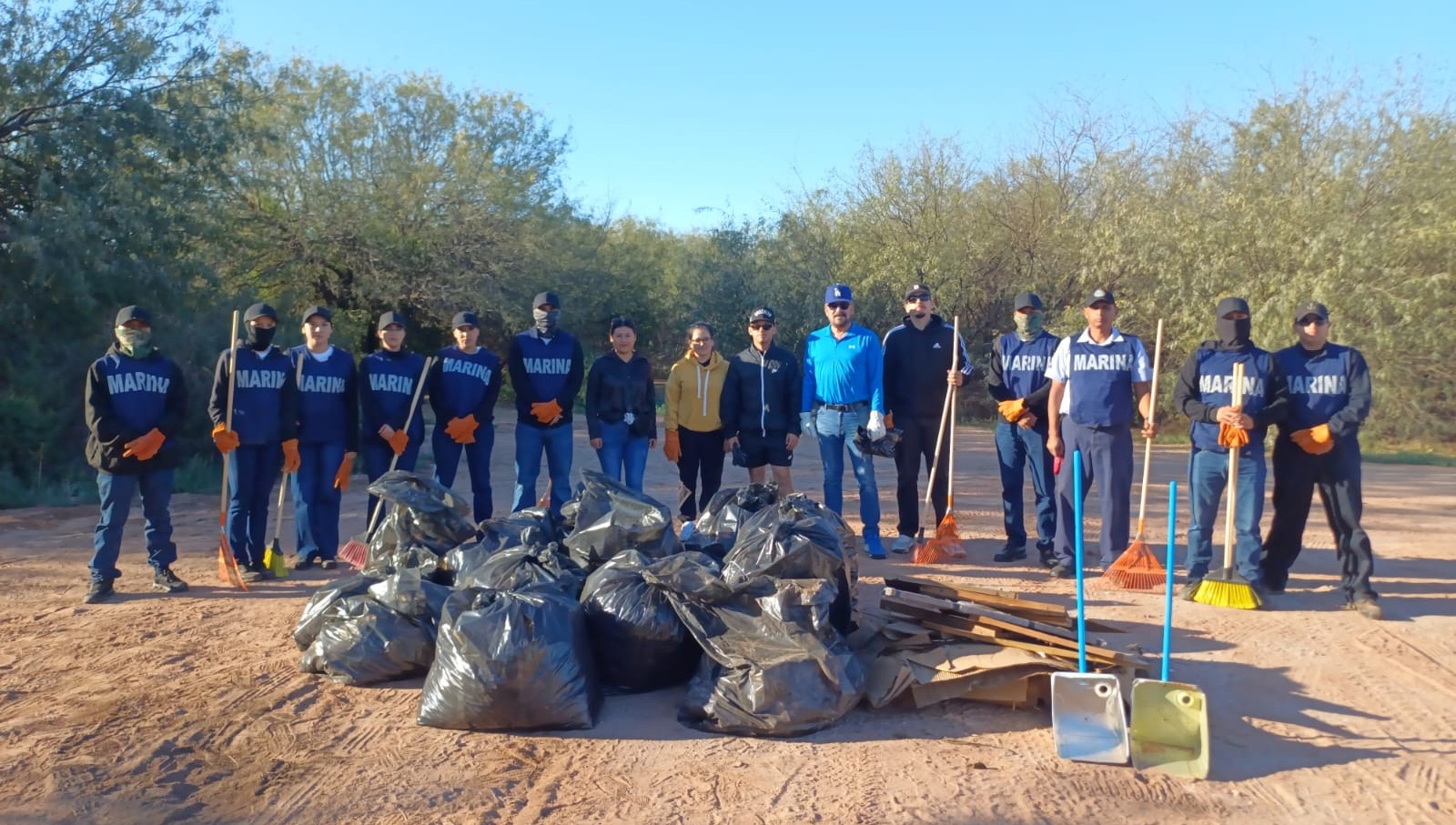 Durante citada limpieza, se contó con la colaboración de 20 elementos navales entre Oficiales, Clases y Marinería y 20 civiles; asimismo, tres vehículos de esta Institución.