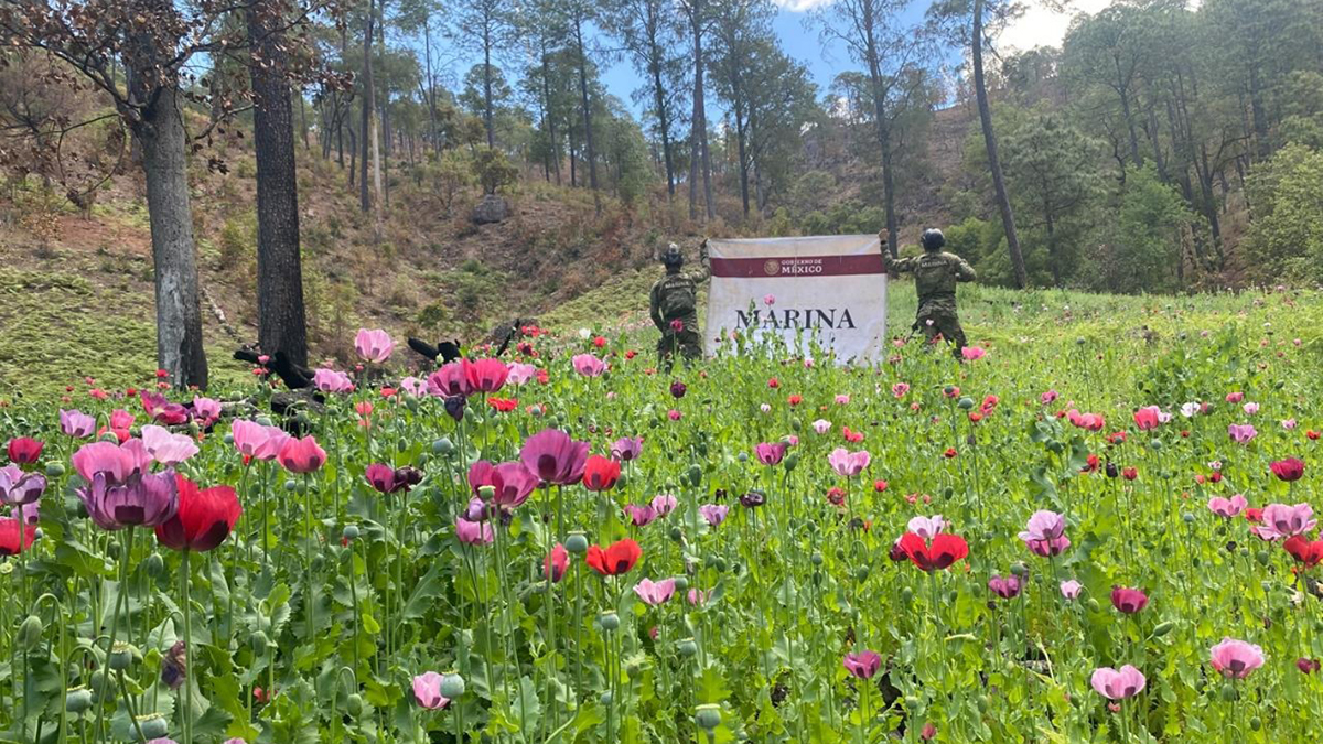 En poco más de un mes, elementos de la Marina destruyeron 16 millones 760 mil 200 plantas de amapola en Nayarit.