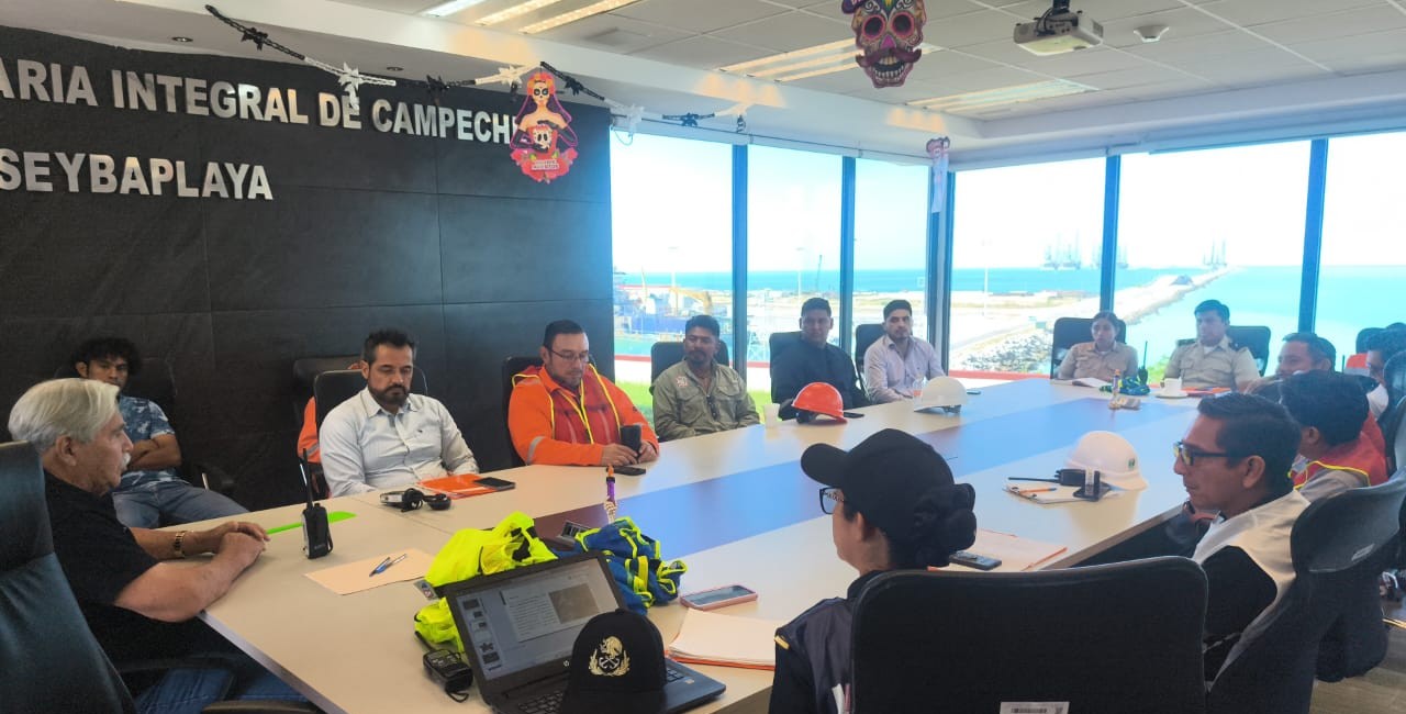 Champotón, Camp., a 28 de noviembre.- La Secretaría de Marina a través de la Armada de México, por conducto del Sector Naval de Champotón, informa que hoy, personal naval en coadyuvancia con la Administración Portuaria Integral de Campeche (APICAM-PAC) Seybaplaya, el H. Ayuntamiento de Seybaplaya y Capitanía de Puerto, realizaron simulacro de acciones para enfrentar derrames hidrocarburos y otras sustancias nocivas en el mar, en Campeche.