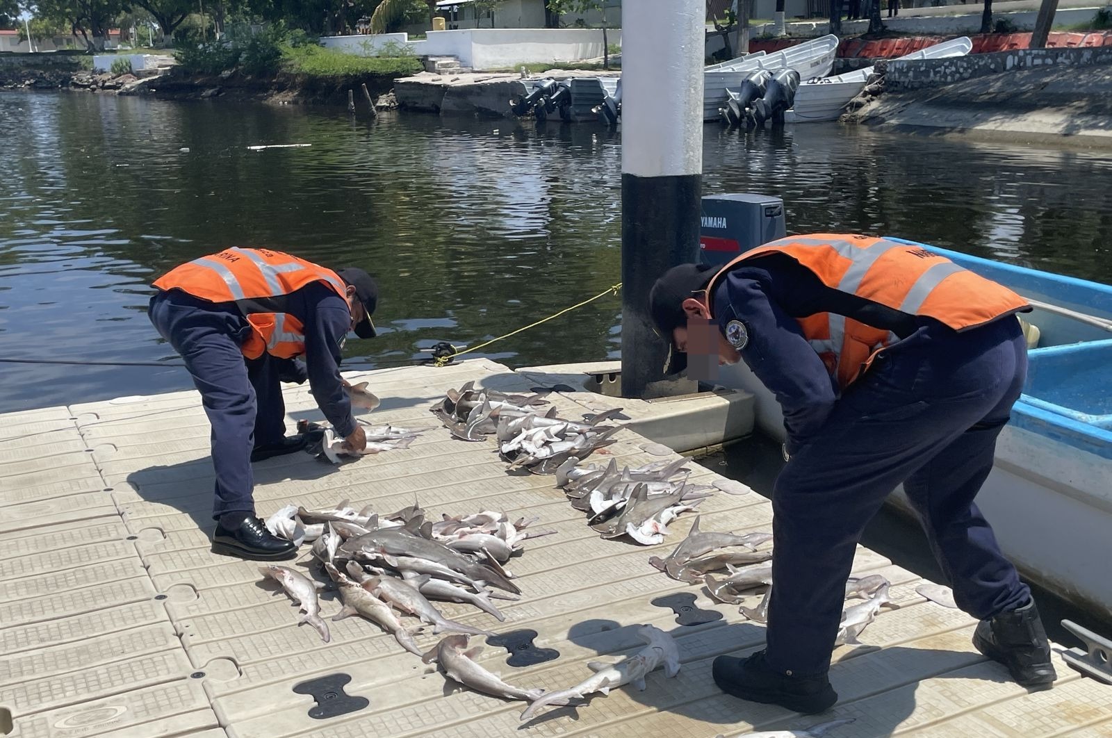 Esta acción se llevó a cabo durante recorridos de vigilancia marítima, cuando personal naval observó una embarcación menor con dos tripulantes a bordo, en inmediaciones de Puerto Chiapas, y al realizar una inspección rutinaria encontró a bordo 68 ejemplares de tiburón “cornuda”, especie que actualmente se encuentran en veda temporal. Los efectos mencionados anteriormente fueron asegurados.