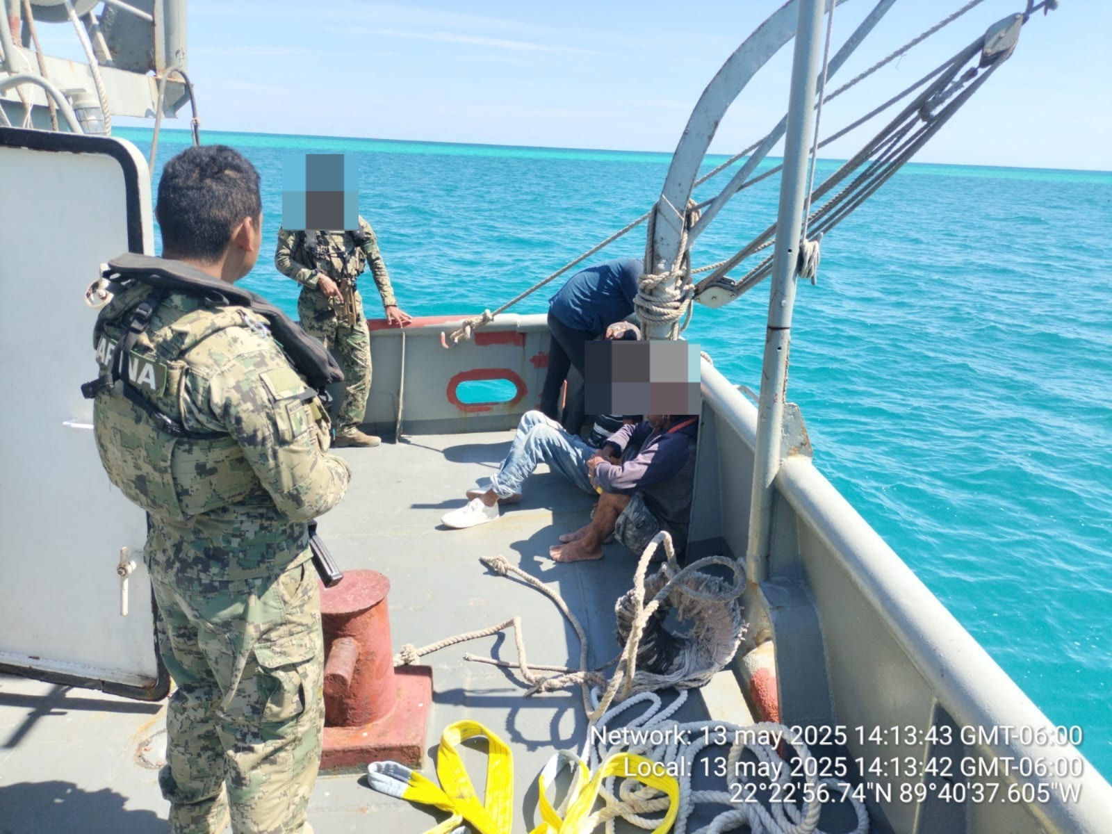 Esta acción se llevó a cabo, cuando personal naval perteneciente al destacamento de Isla Pérez avistó una embarcación menor tipo imemsa con tres tripulantes, quienes solicitaron apoyo, mencionando que en días pasados habían salido de la Caleta de Progreso, Yucatán, sin poder retornar a puerto por no contar con suficiente combustible, procediendo a brindarles los apoyos necesarios por parte de personal de sanidad naval encontrándolos sanos y estables.