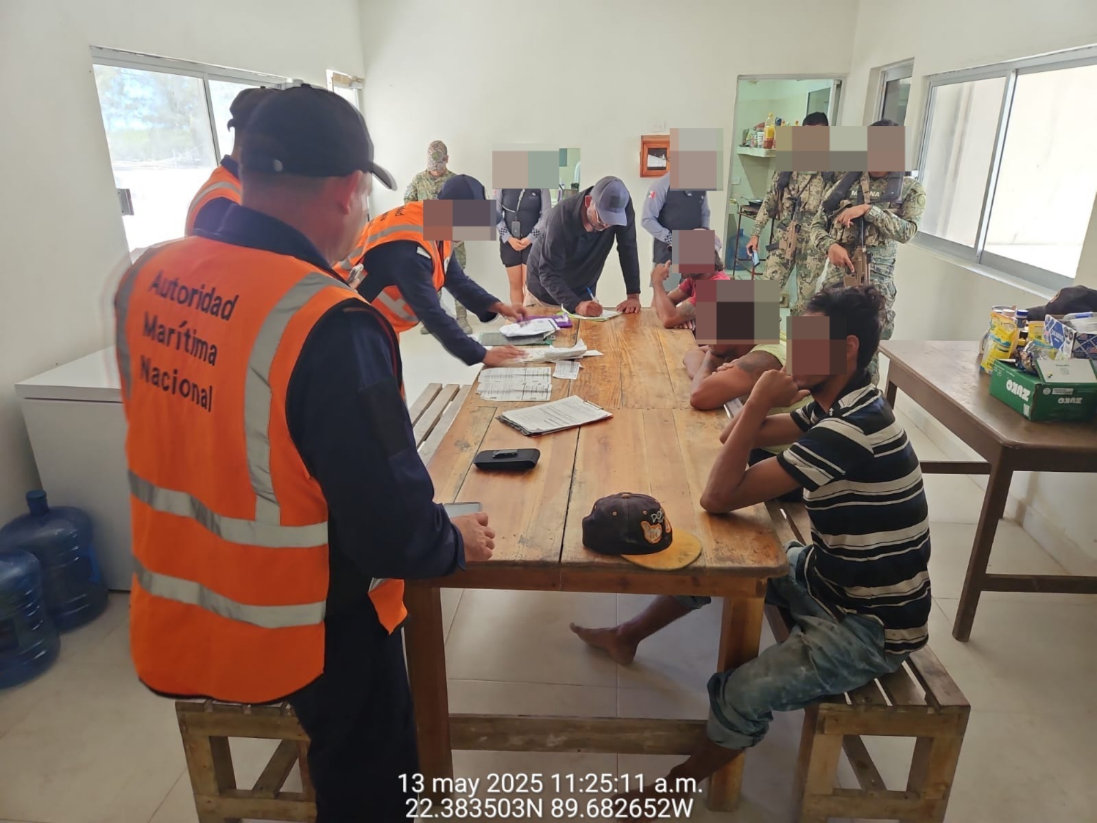 Yucalpetén, Yucatán.- La Secretaría de Marina a través de la Armada de México en funciones de Guardia Costera, por conducto de la Novena Zona Naval, informa que, en coordinación con la Comisión Nacional de Acuacultura y Pesca (CONAPESCA), se llevó a cabo la puesta a disposición de tres personas, artes de pesca y producto marino en veda, como parte de las acciones en contra de la pesca ilegal y la depredación de especies protegidas, en Isla Pérez, Yucatán.