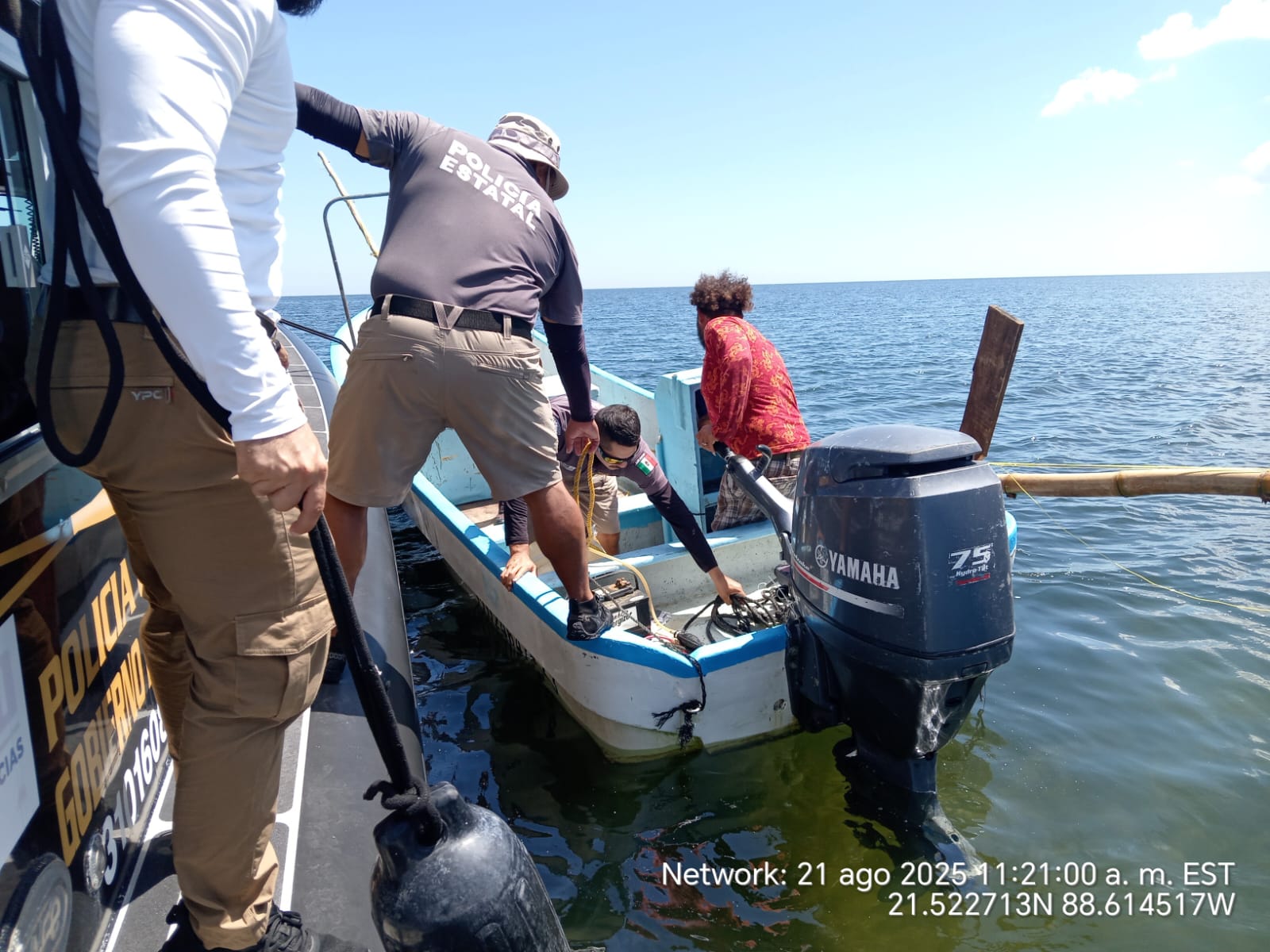 Yucalpetén, Yucatán. – La Secretaría de Marina a través de la Armada de México por conducto de la Novena Zona Naval, informa que ayer, personal naval en coordinación con la Comisión Nacional de Acuacultura y Pesca (CONAPESCA) y de la Secretaría de Seguridad Pública de Yucatán (SSPY), retuvieron una embarcación menor por no contar con los permisos de pesca correspondientes, en las costas de Dzilam de Bravo.