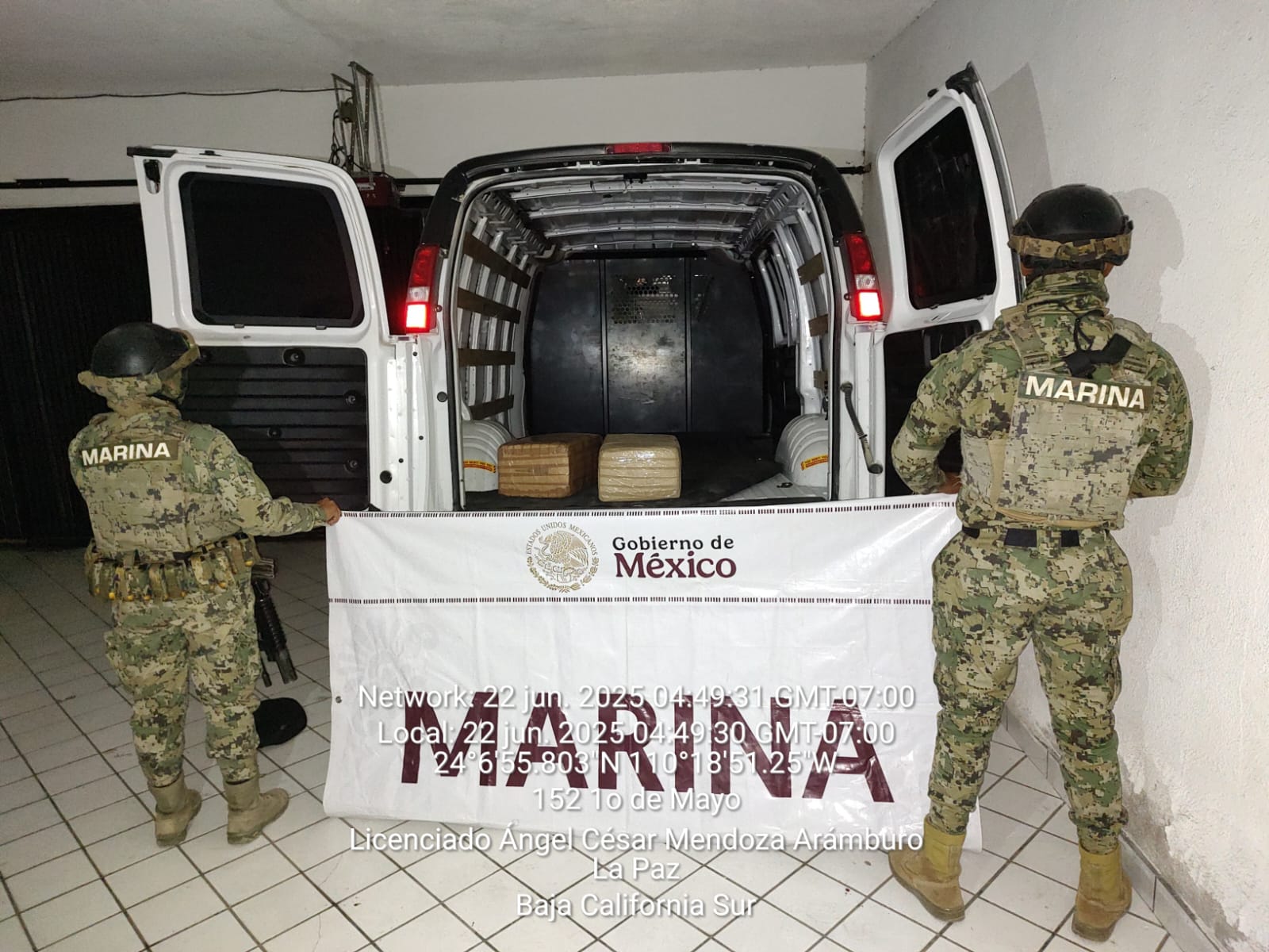 La Paz, Baja California Sur. – La Secretaría de Marina a través de la Armada de México, informa que, personal de la Cuarta Zona Naval en coordinación con la Secretaría de la Defensa Nacional (Defensa), Fiscalía General de la República (FGR) y la Policía Estatal, en días pasados aseguraron un vehículo , paquetes con presunta marihuana, un cargador y cartuchos, en la Paz  Baja California Sur.