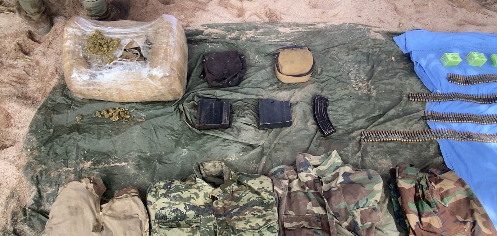 El primer evento se llevó a cabo durante un recorrido terrestre en inmediaciones del municipio de Cosalá, personal naval aseguró aproximadamente 875 cartuchos de diversos calibres, cuatro cargadores, un paquete de aproximadamente cinco kilogramos de hierba seca con características similares a la marihuana, así como equipo táctico.