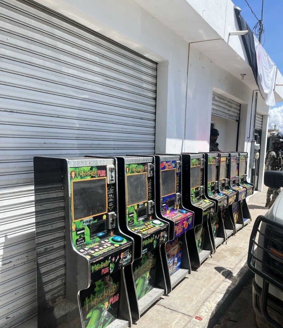 Asimismo, en un tercer evento durante un patrullaje terrestre en inmediaciones de la carretera El Salto-Villa Unión, municipio de Concordia, fueron asegurados dos vehículos con reporte de robo, 98 dosis de polvo blanco con características similares a la cocaína, 23 dosis de sustancia granulada similar a la metanfetamina, una dosis de hierba seca con características similares a la marihuana, así como 19 máquinas tragamonedas denominadas habichuelas.