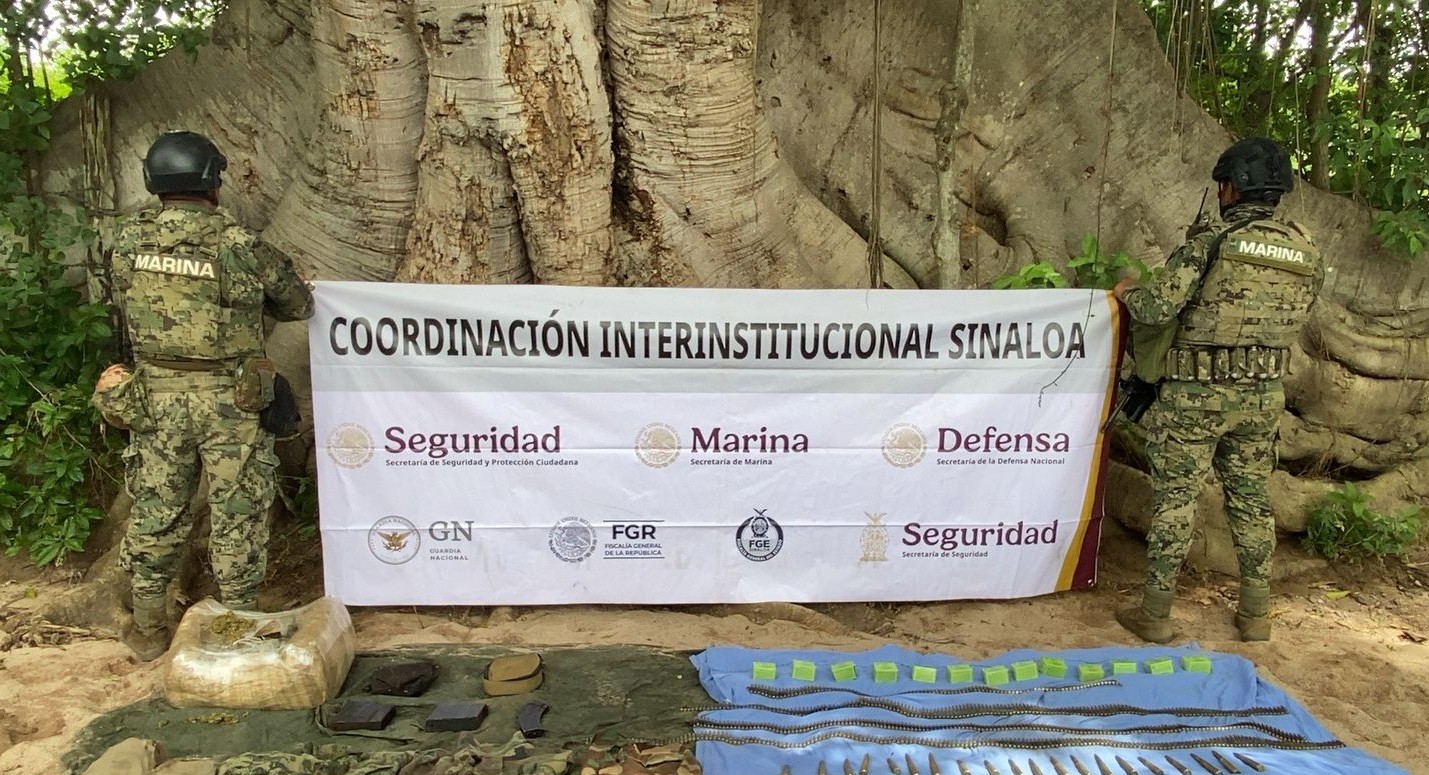 Mazatlán, Sinaloa. – La Secretaría de Marina a través de la Armada de México, informa que, personal de la Cuarta Región Naval, en coadyuvancia con la Secretaría de Defensa Nacional (Defensa), Guardia Nacional (GN), Fiscalía General de la República (FGR) y Fiscalía General del Estado (FGE), en cinco eventos distintos, aseguraron vehículos, armamento, municiones, artefactos explosivos improvisados, así como presunta droga, máquinas tragamonedas, equipo táctico y ponchallantas, en diversas localidades el estado de Sinaloa.