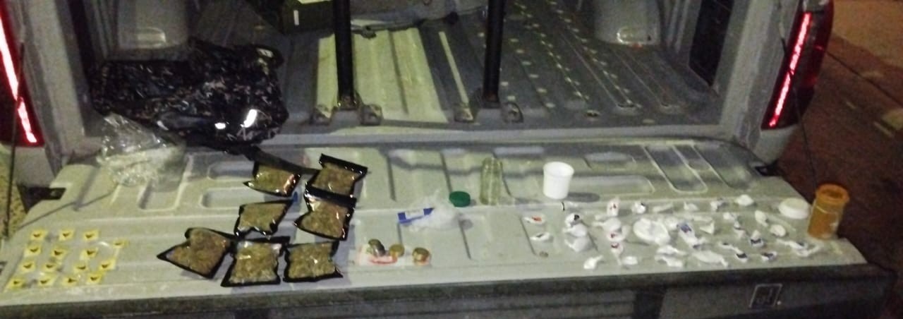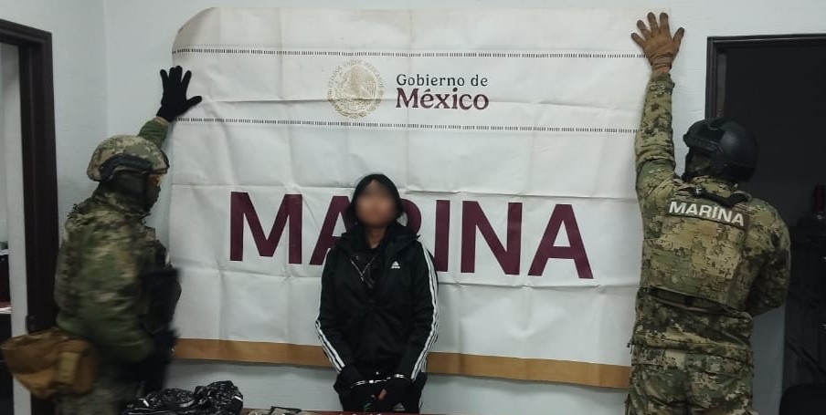 En una primera acción en conjunto, durante un recorrido de vigilancia terrestre en la Colonia Ferrocarrilera, se tuvo a la vista a una persona del sexo femenino, quién al advertir la presencia de los elementos de seguridad, adoptó una actitud evasiva, por lo que se le indicó el alto y posteriormente se efectúo una revisión, procediendo a su detención por encontrar bajo su posesión siete empaques que contenían hierba con características similares a las de la marihuana, 37 envoltorios que contenían sustancias con características similares a las de la cocaína, así como 15 empaques que contenían una sustancia con características similares a la metanfetamina y un equipo de comunicación.