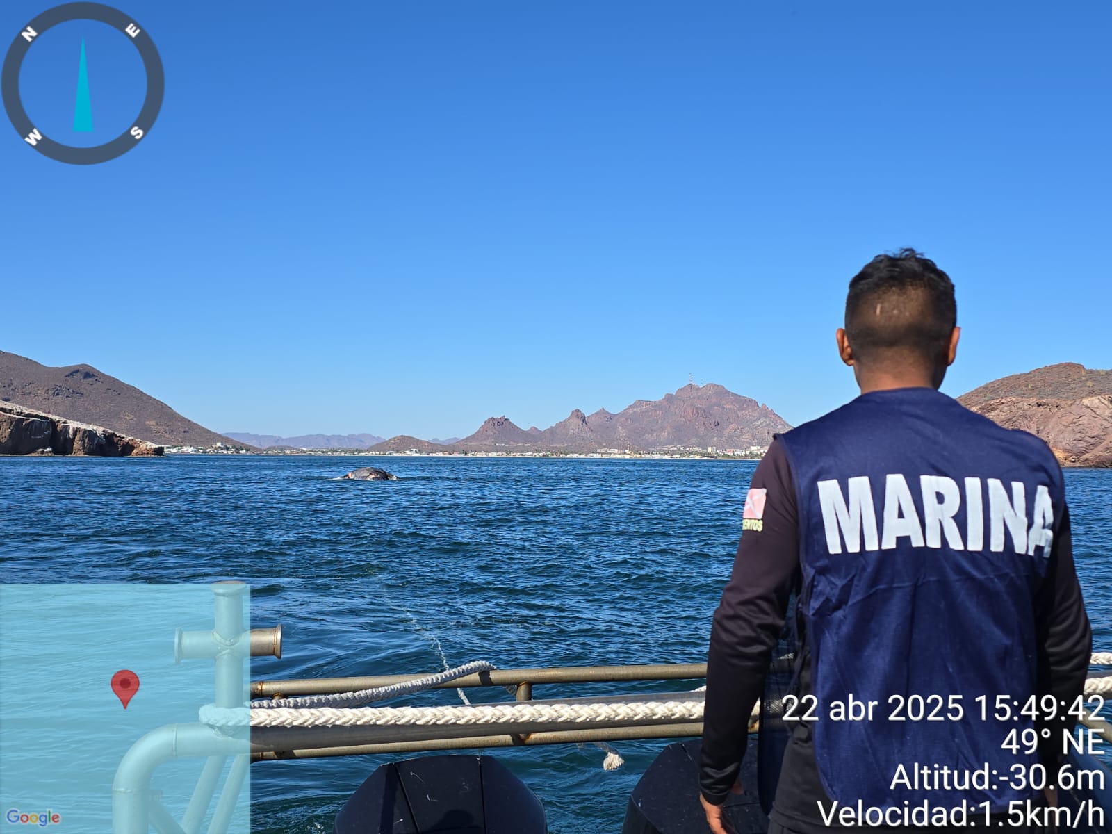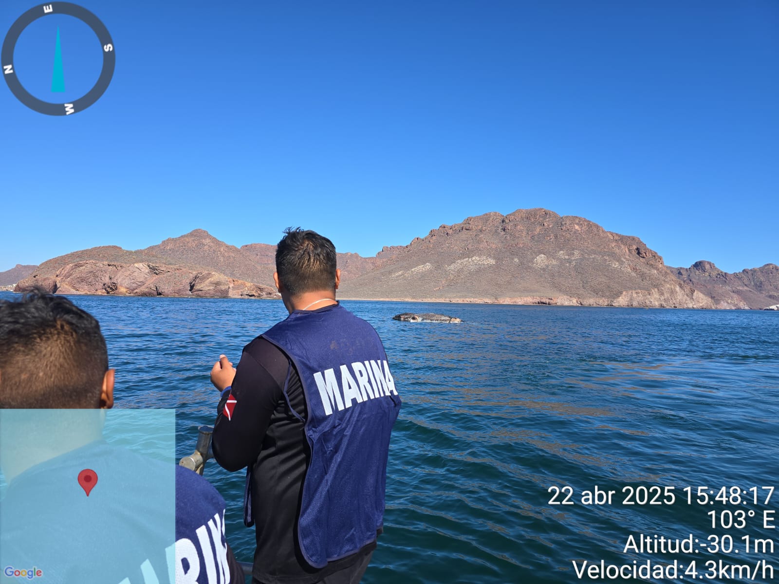 Lo anterior, se llevó a cabo tras recibir una alerta donde indicaba del varamiento de una ballena sin vida en inmediaciones de la playa Miramar, por lo que se ordenó el zarpe de una embarcación tipo Defender perteneciente a la Estación Naval de Búsqueda Rescate y Vigilancia Marítima (ENSAR) Guaymas, y una embarcación menor tipo Barracuda, transportando a personal naval de Biólogos Marinos para coadyuvar con personal de PROFEPA y de PC de Guaymas para las maniobras de puesta a flote y remolque a mar abierto de citado cetáceo.