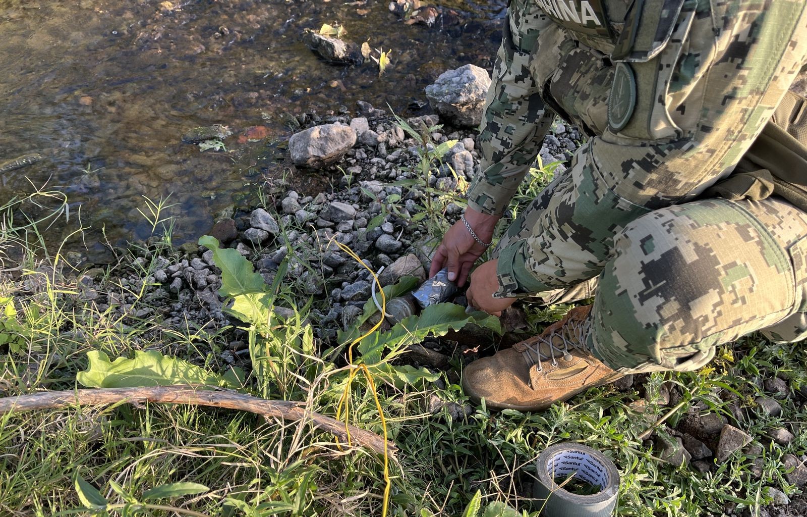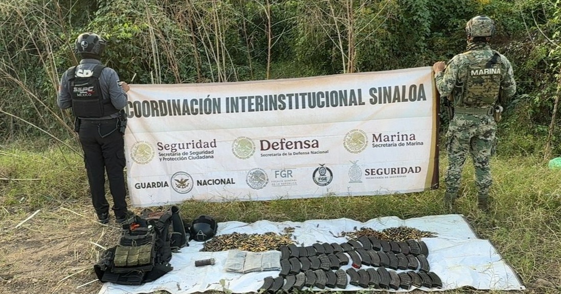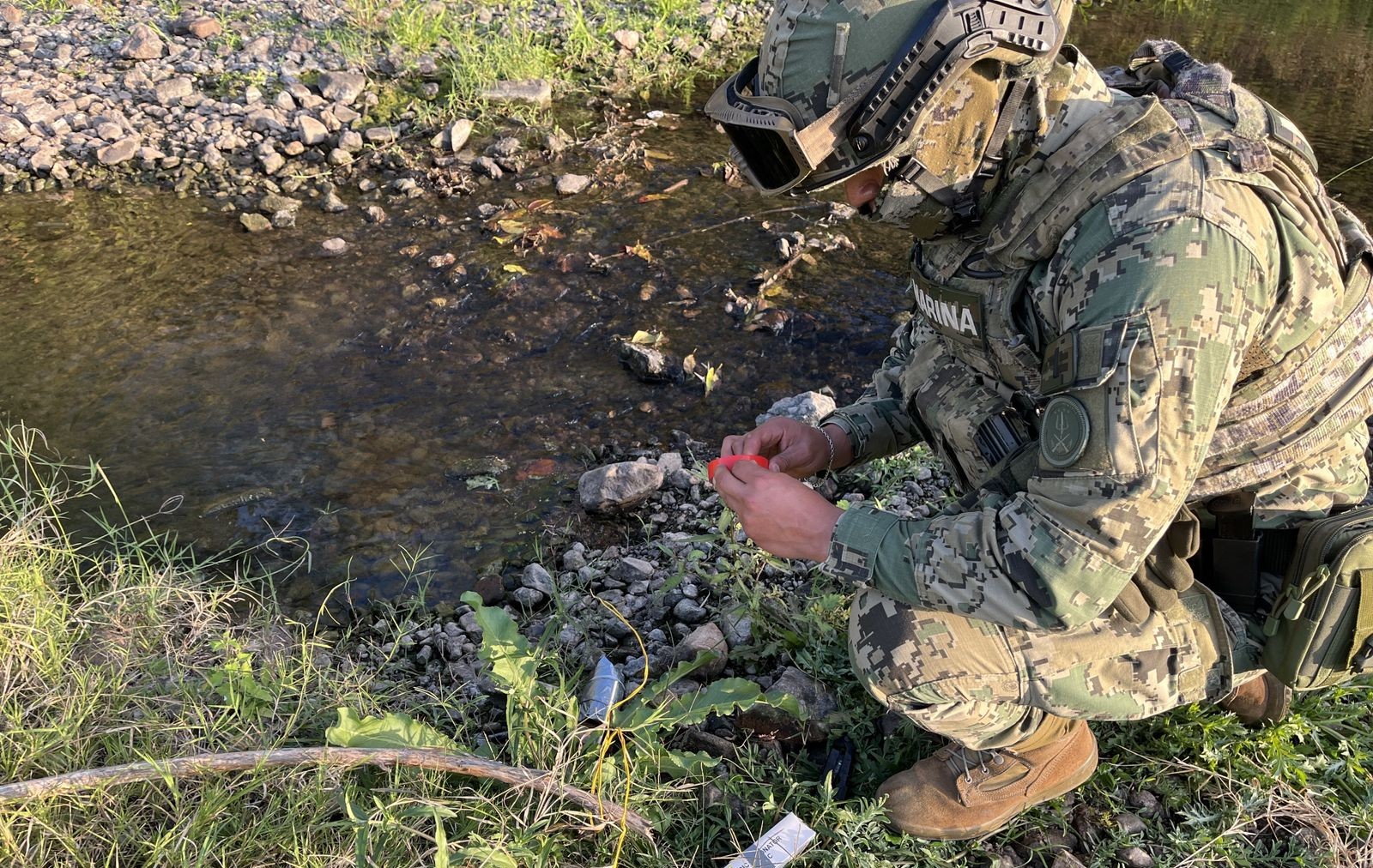 Mazatlán, Sin. – La Secretaría de Marina, a través de la Armada de México, por conducto de la Cuarta Región Naval, informa que, derivado de los operativos que se están realizando en coordinación con la Secretaría de Seguridad Pública Ciudadana (SSPC) durante la búsqueda de los 10 mineros desaparecidos, se obtuvo como resultado el aseguramiento de municiones, equipo táctico, un artefacto explosivo improvisado y de igual forma se localizaron campamentos, en Sinaloa.