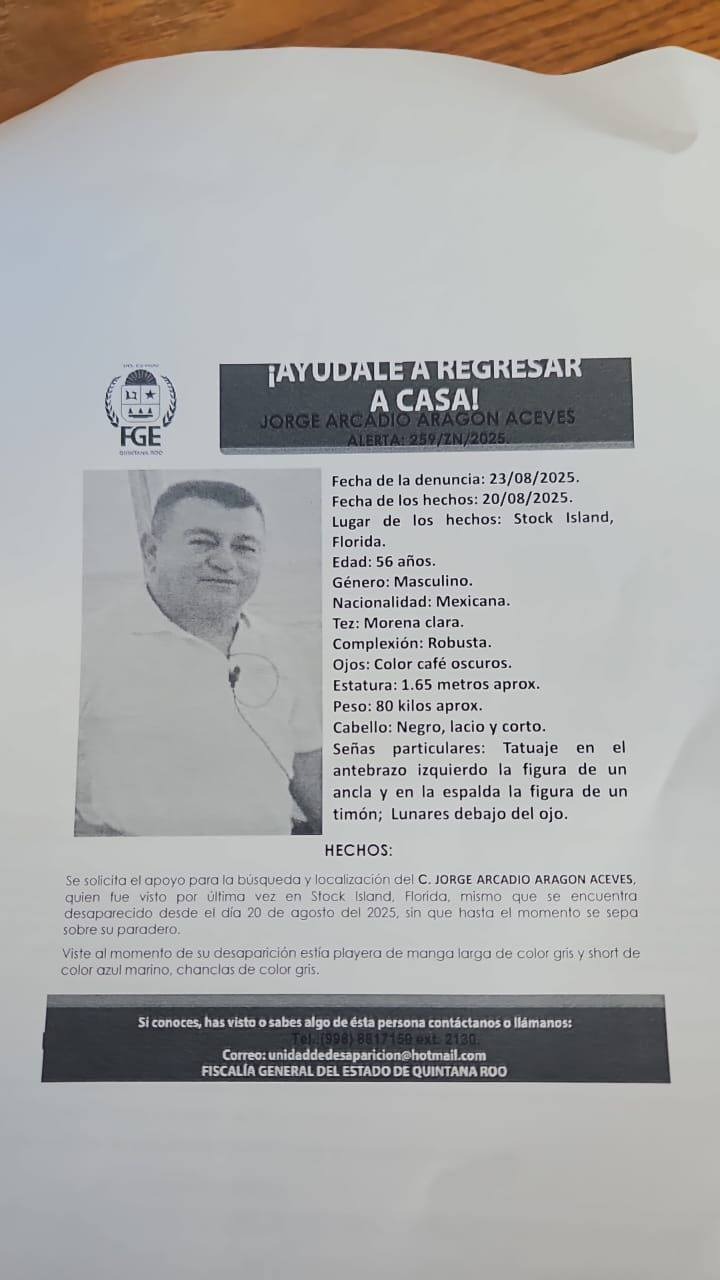 Cabe mencionar que, el pasado 22 de agosto al tener conocimiento de la demora de arribo de citada embarcación, tripulada por Jorge Aragón y Ricardo Argáez, se ejecutaron de manera inmediata diversas operaciones con la finalidad de realizar la búsqueda y localización de la embarcación y sus tripulantes.