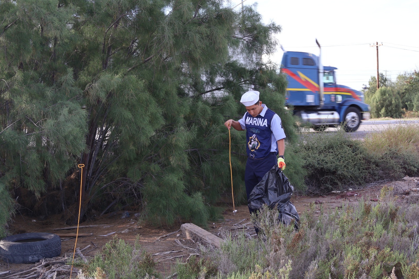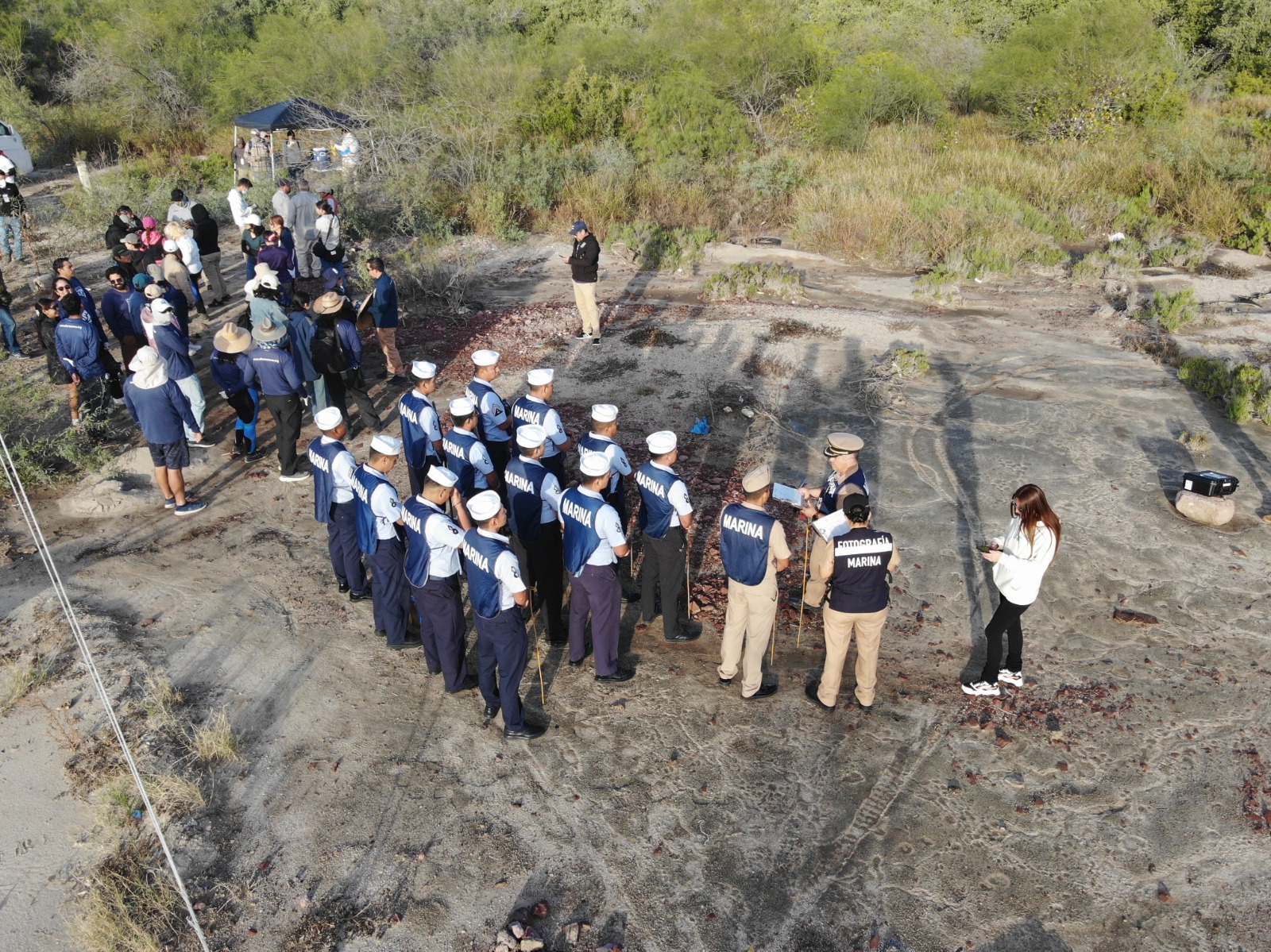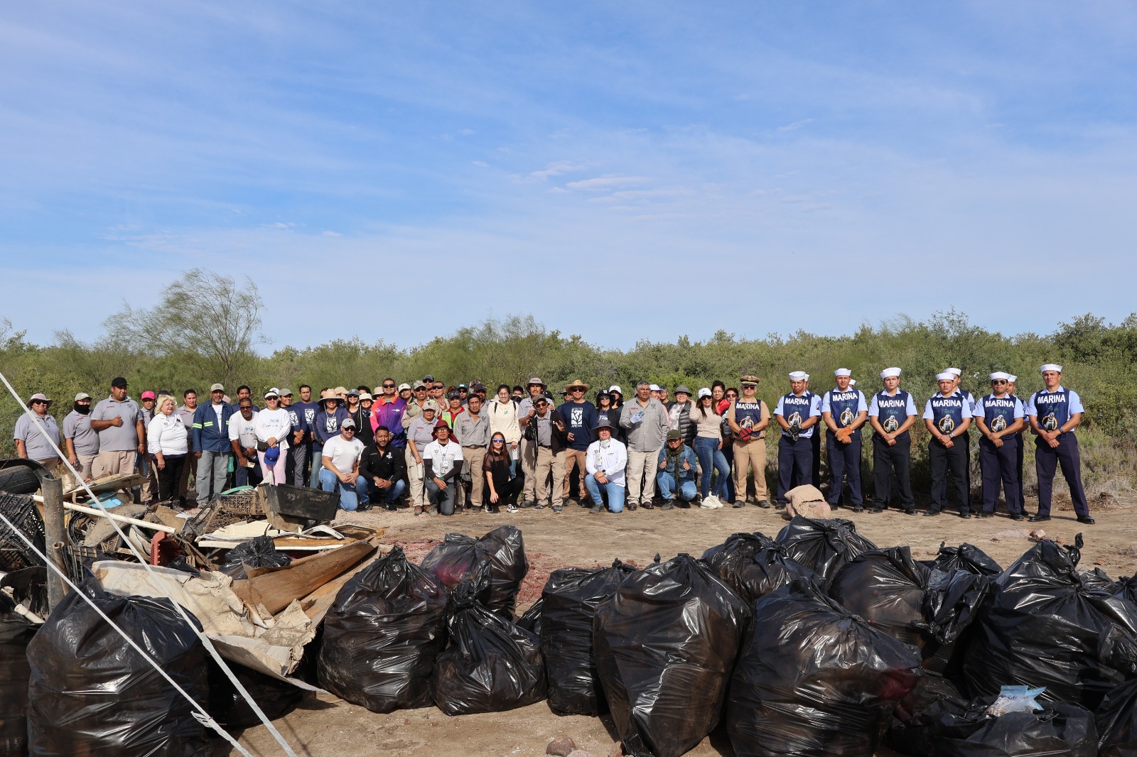 La Secretaría de Marina a través de la Armada de México, por conducto de la Cuarta Zona Naval, en apoyo a la Zona Federal Marítimo Terrestre (ZOFEMAT), informa que hoy participó en una jornada de limpieza de playa en la zona de manglares del Ecoparque, en La Paz, Baja California Sur