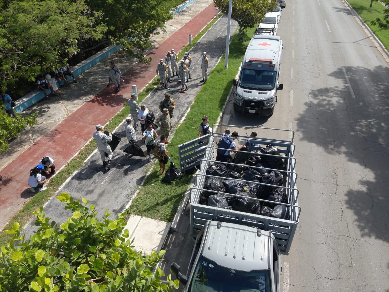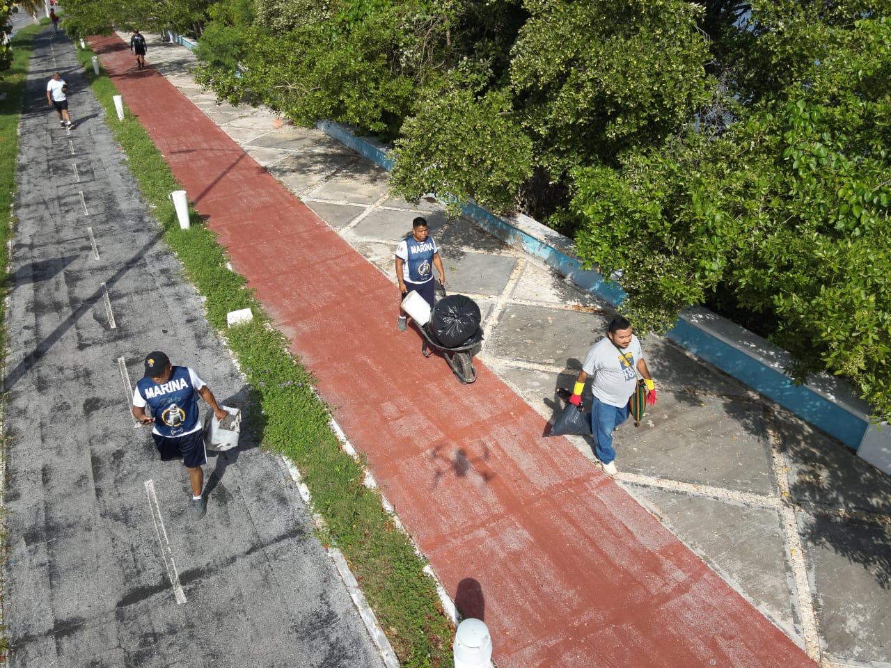 Lerma, Campeche.- La Secretaría de Marina por conducto de la Séptima Zona Naval, informa que ayer, personal del Batallón de Infantería Número 17 y al Hospital Naval de Campeche, en colaboración con la Secretaría de la Defensa Nacional (Defensa), Guardia Nacional (GN) y el Consejo Coordinador Empresarial de Campeche; llevaron a cabo la Jornada de Limpieza de Playas, en el malecón Costero del estado de Campeche, Campeche.