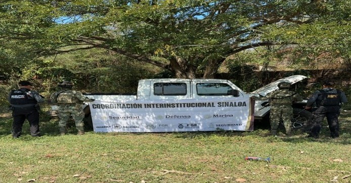 Mazatlán, Sin. – La Secretaría de Marina, a través de la Armada de México, por conducto de la Cuarta Región Naval, informa que en días pasados durante acciones interistitucionales, personal naval realizó el aseguramiento de un vehículo, municiones, chalecos balísticos y artefactos explosivos improvisados en Mazatlán, Sinaloa.