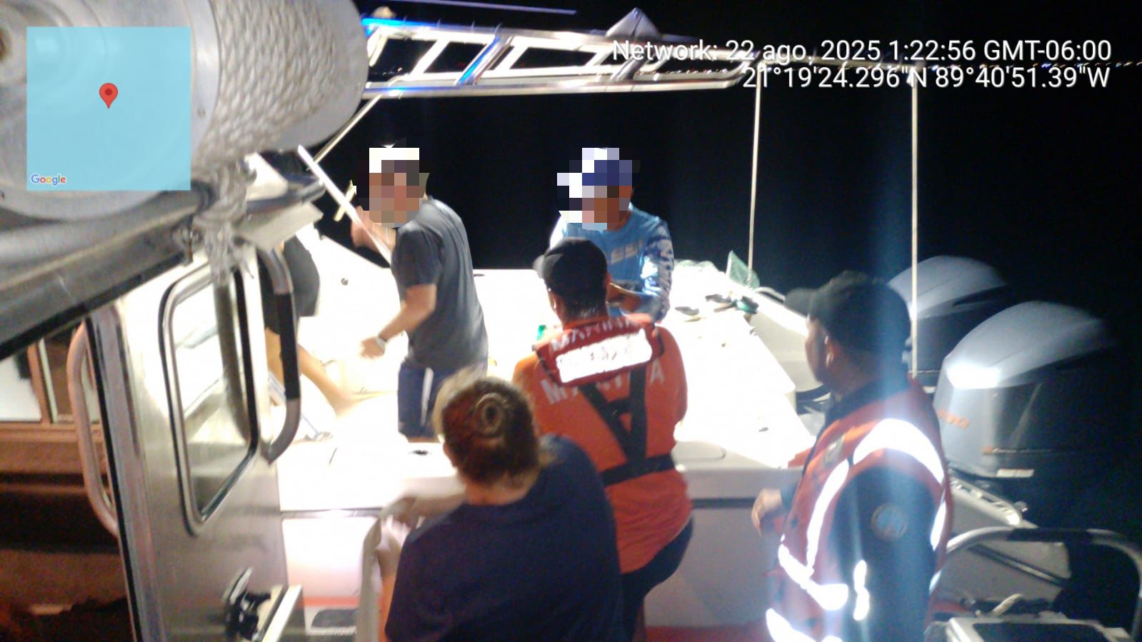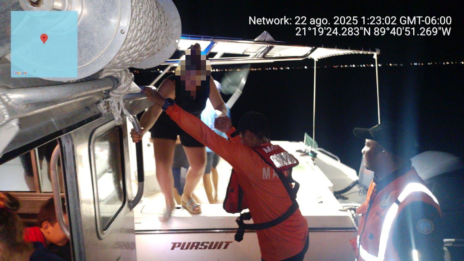 Derivado de lo anterior y con el objetivo de salvaguardar la vida humana en la mar, este Mando Naval ordenó el zarpe de una embarcación tipo Defender con elementos de la Estación Naval de Búsqueda, Rescate y Vigilancia Marítima (ENSAR) Yukalpetén, quienes realizaron la evacuación y rescate de siete tripulantes, entre ellos cuatro menores de edad, quienes fueron trasladados a puerto seguro, siendo recibidos por sus familiares.