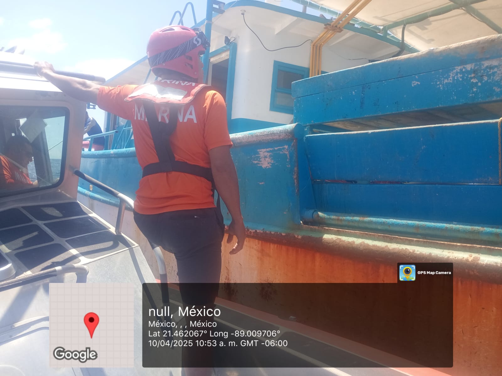 Yucalpetén, Yucatán. – La Secretaría de Marina a través de la Armada de México, en funciones de Guardia Costera, informa que el día de ayer, personal de la Novena Zona Naval, realizaron el apoyo de evacuación médica de un tripulante de una embarcación pesquera a aproximadamente 60 millas náuticas (111 kilómetros) al noreste de puerto Progreso, Yucatán.